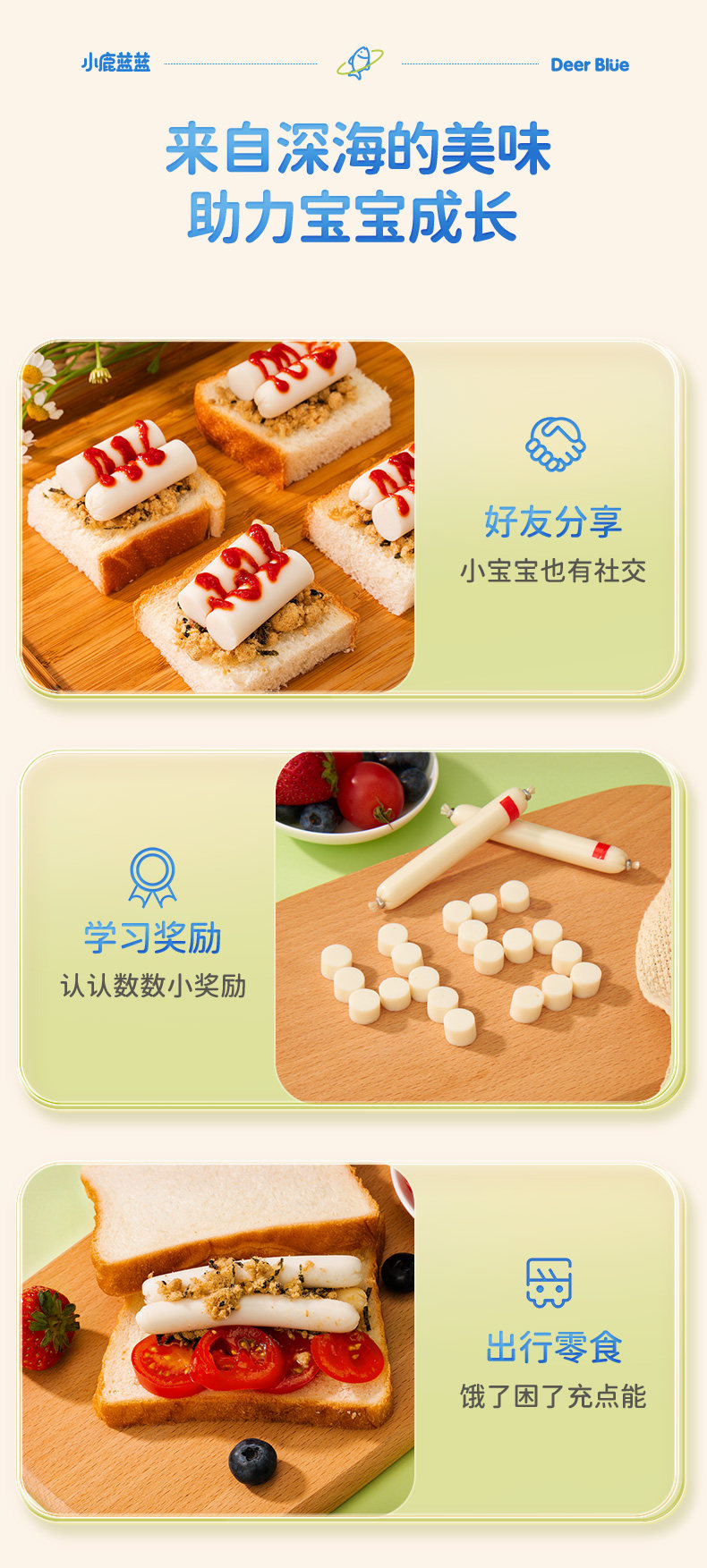 Fawn Blue Cod Sausage Children's Ham Sausage Nutritious Snacks (Sends Infant Complementary Food Recipes)