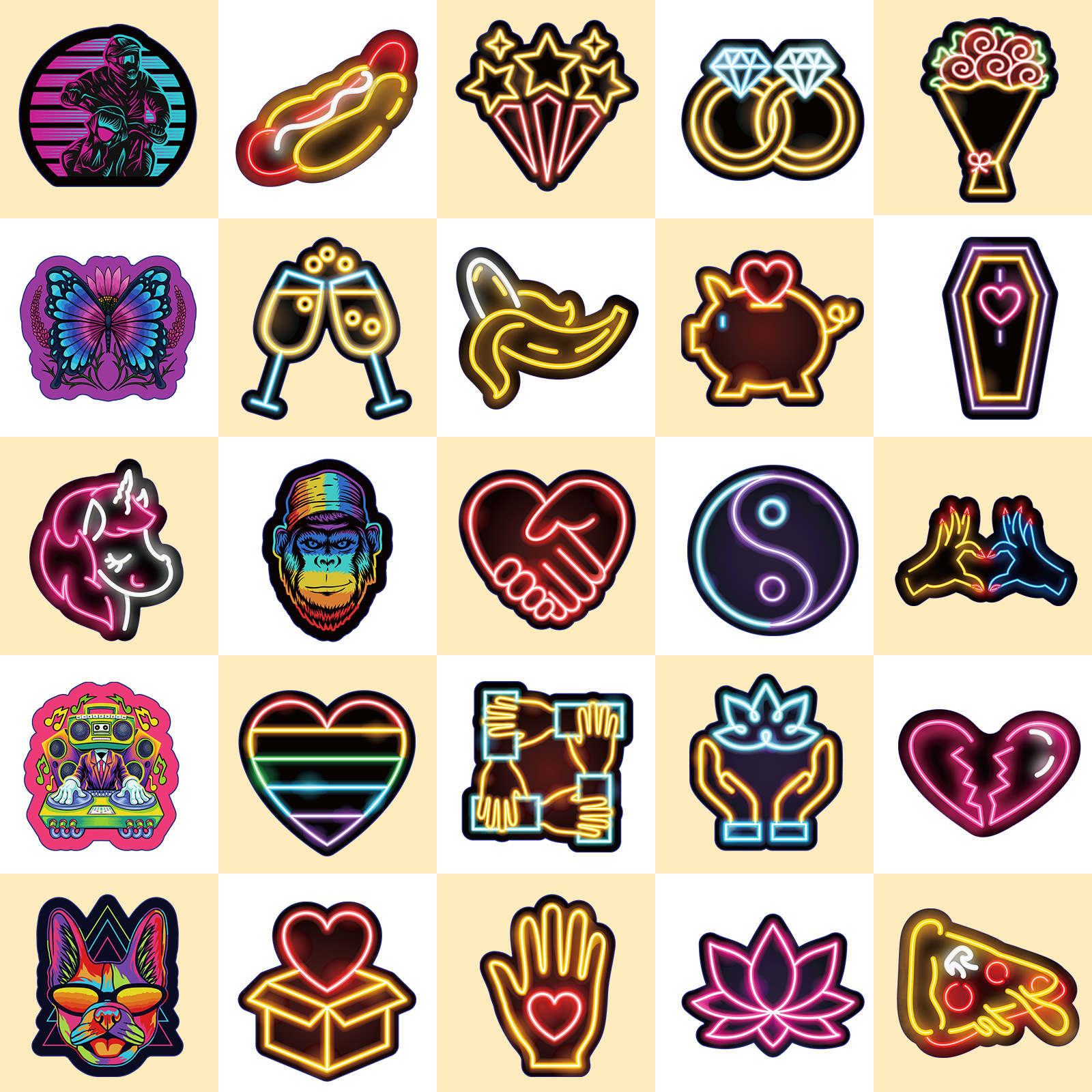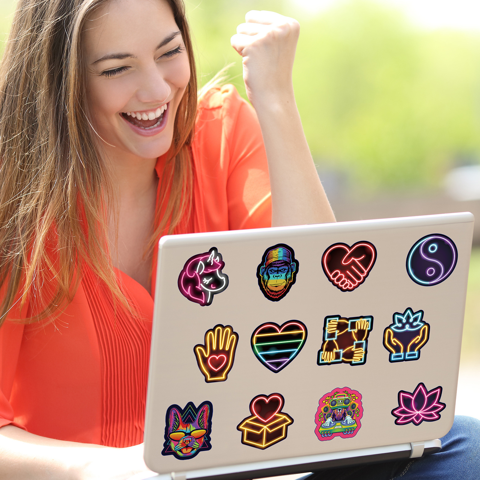 50 Neon Light New Product Personalized Cartoon Car Computer Skateboard Luggage Amazon Graffiti Stickers Shein