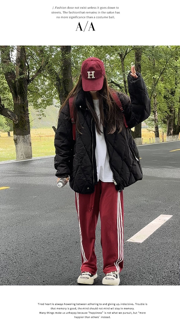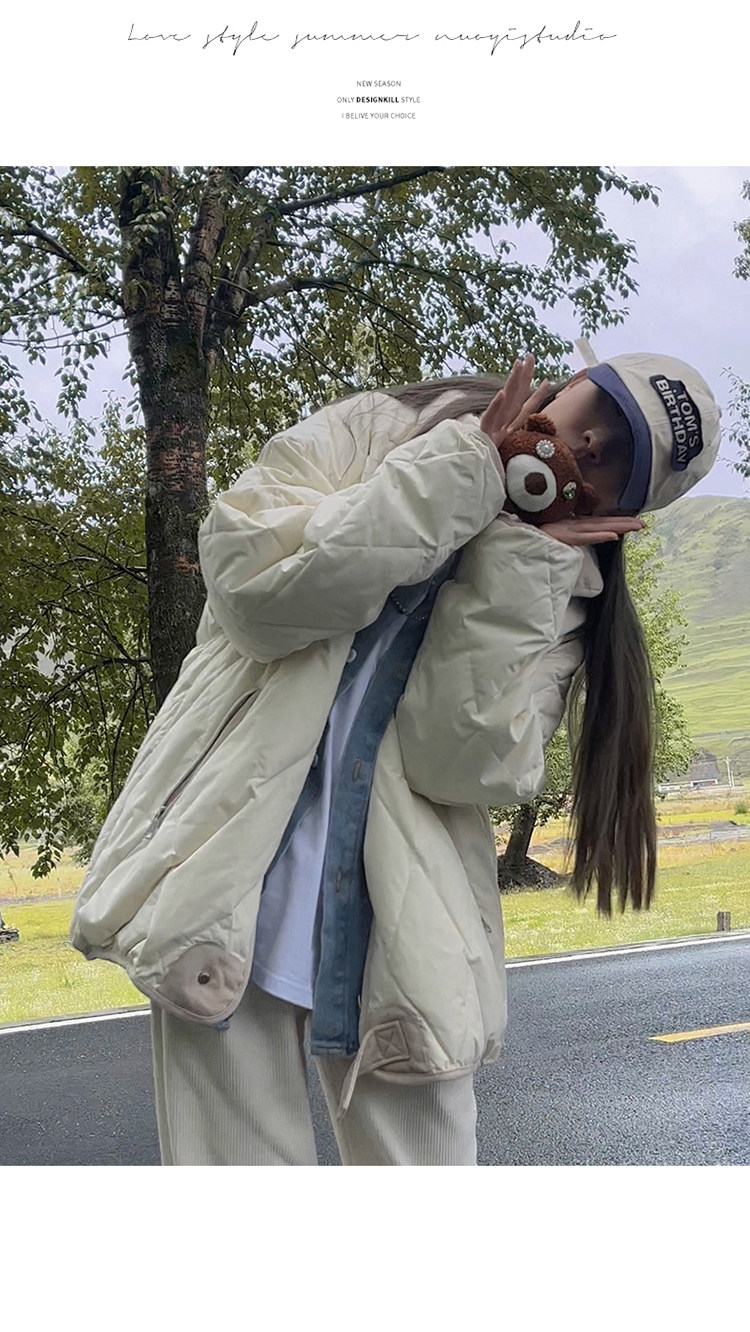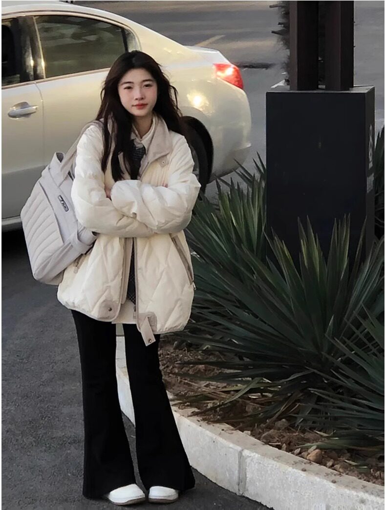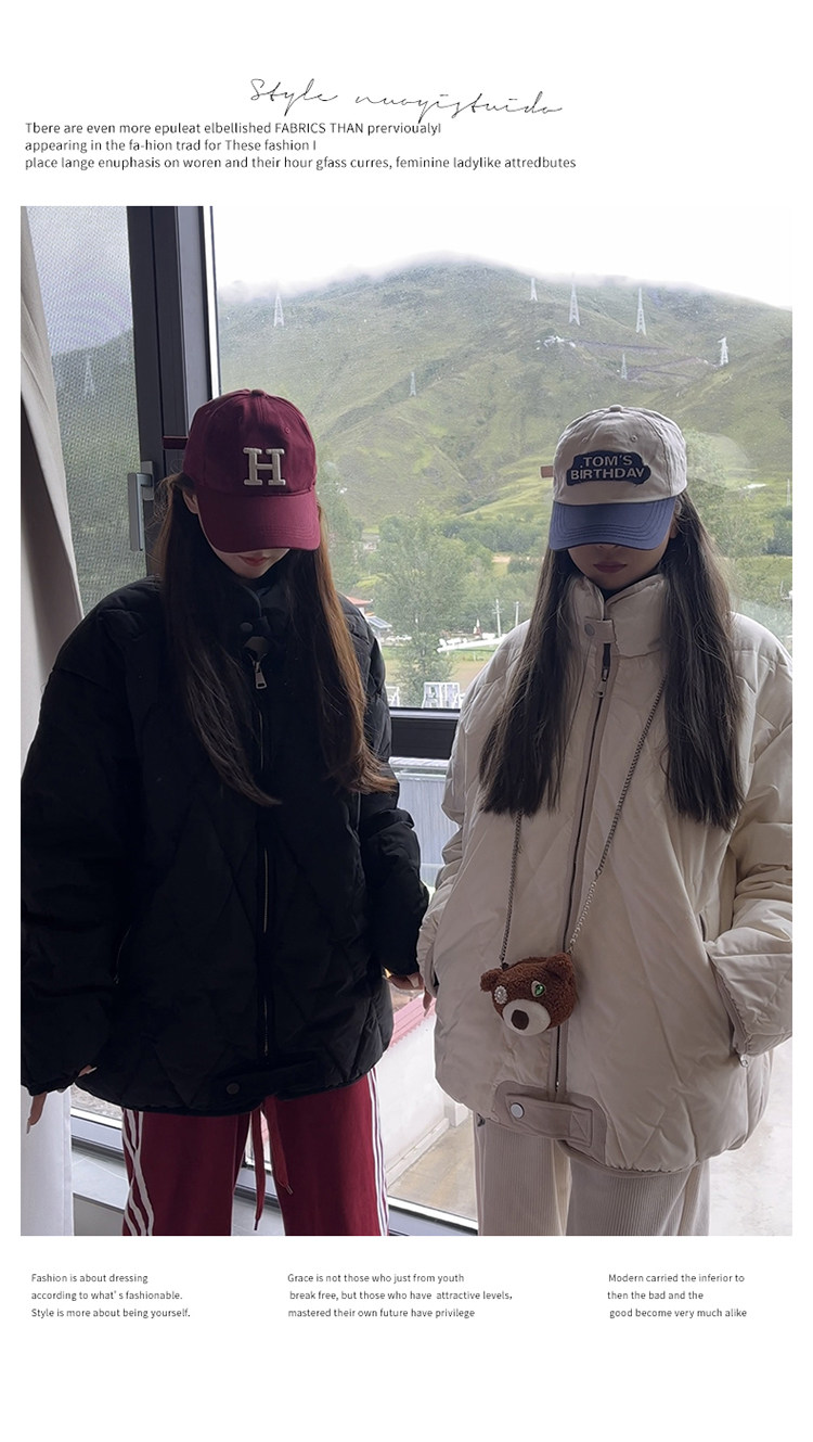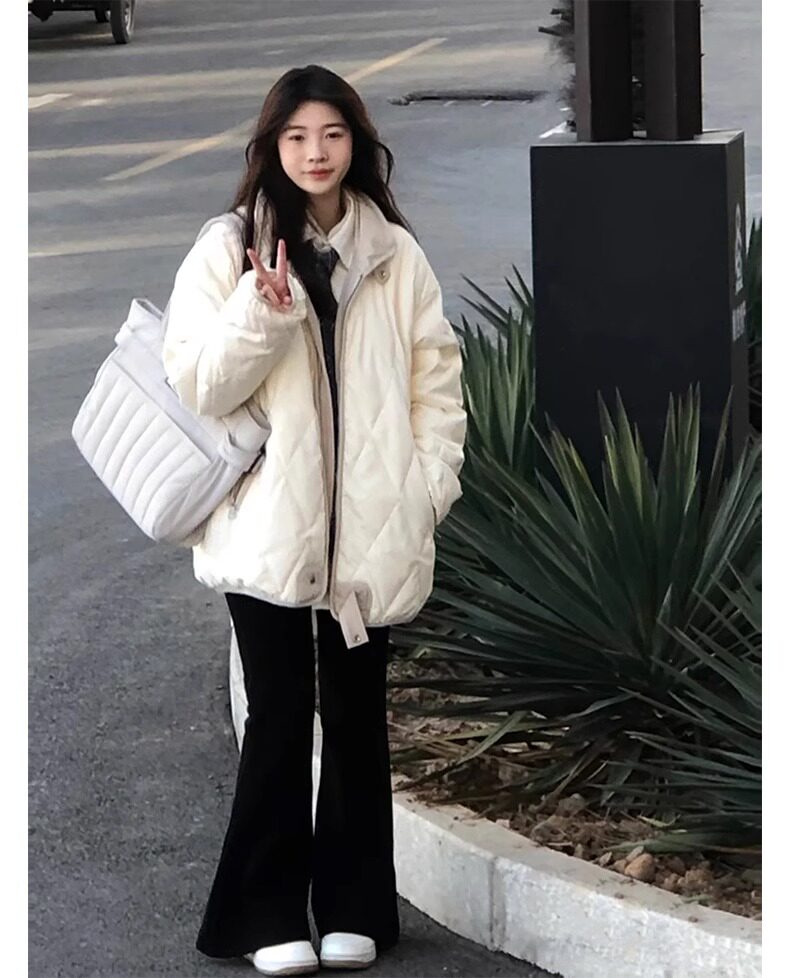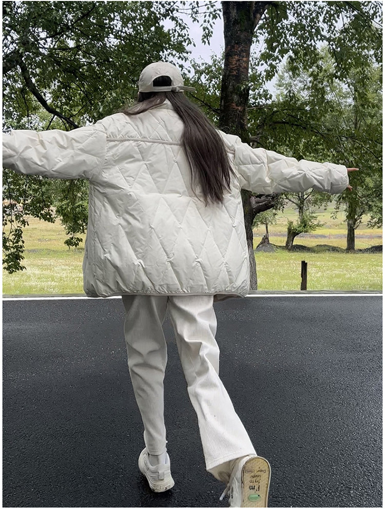 New down jacket for women, winter baseball rhombus quilted jacket for small people, thickened autumn and winter cotton coat