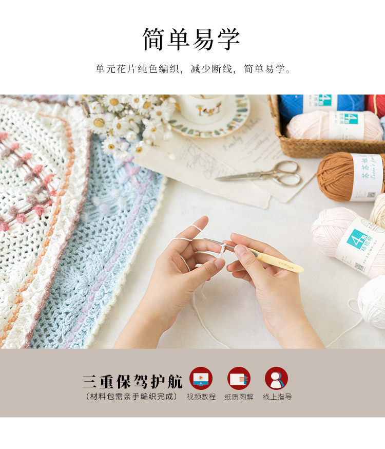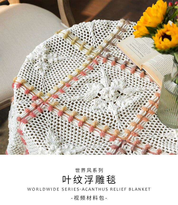 Sister Su Su's leaf pattern embossed blanket relieves boredom, handmade diy crochet blanket knitting yarn ball production material package