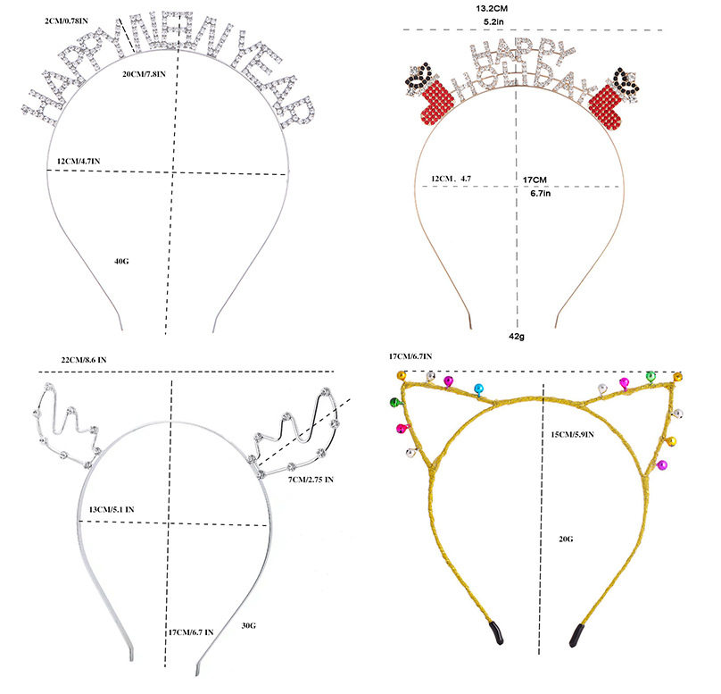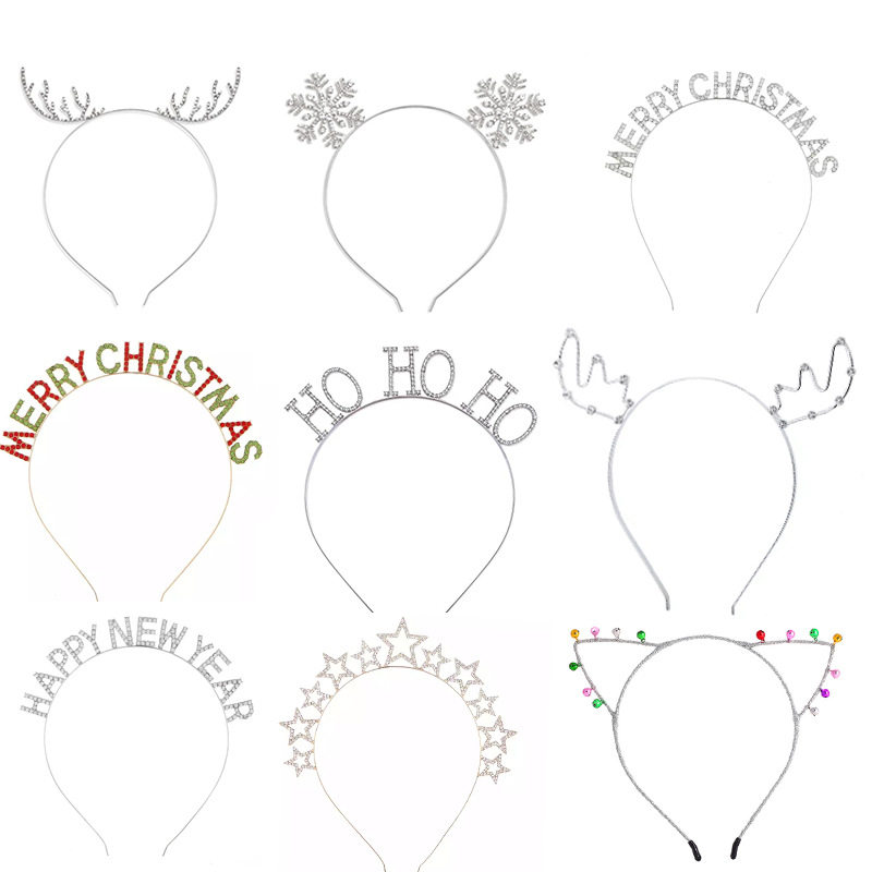 Sort by color Antlers silver,snowflake silver,HO HO HO silver,merry christmas silver,merry christmas color,happy new year silver,five-pointed star silver,merry christmas contrasting colors,Happy New Year Silver 2,five-pointed star gold,happy holidays golden,antlers golden,Snowflake hair comb silver,Large antlers silver,Bell cat ears silver,Bell cat ears gold