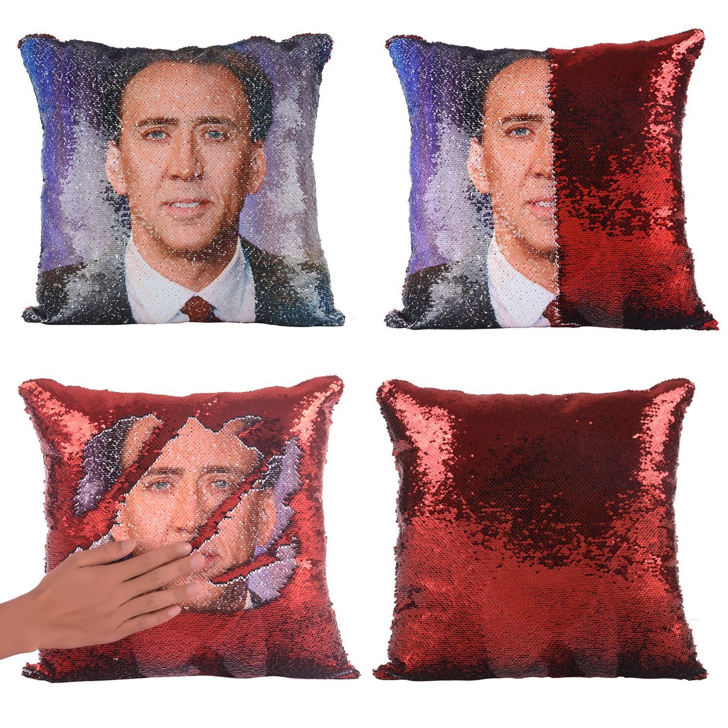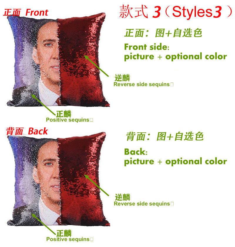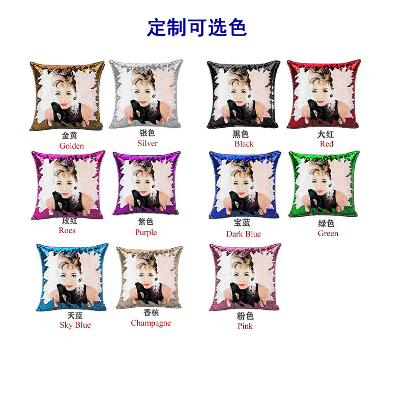 Customized sequin pillow with pictures, two-color idol photo, same style cushion cover, photo printing, flip pillow cover, funny sequins