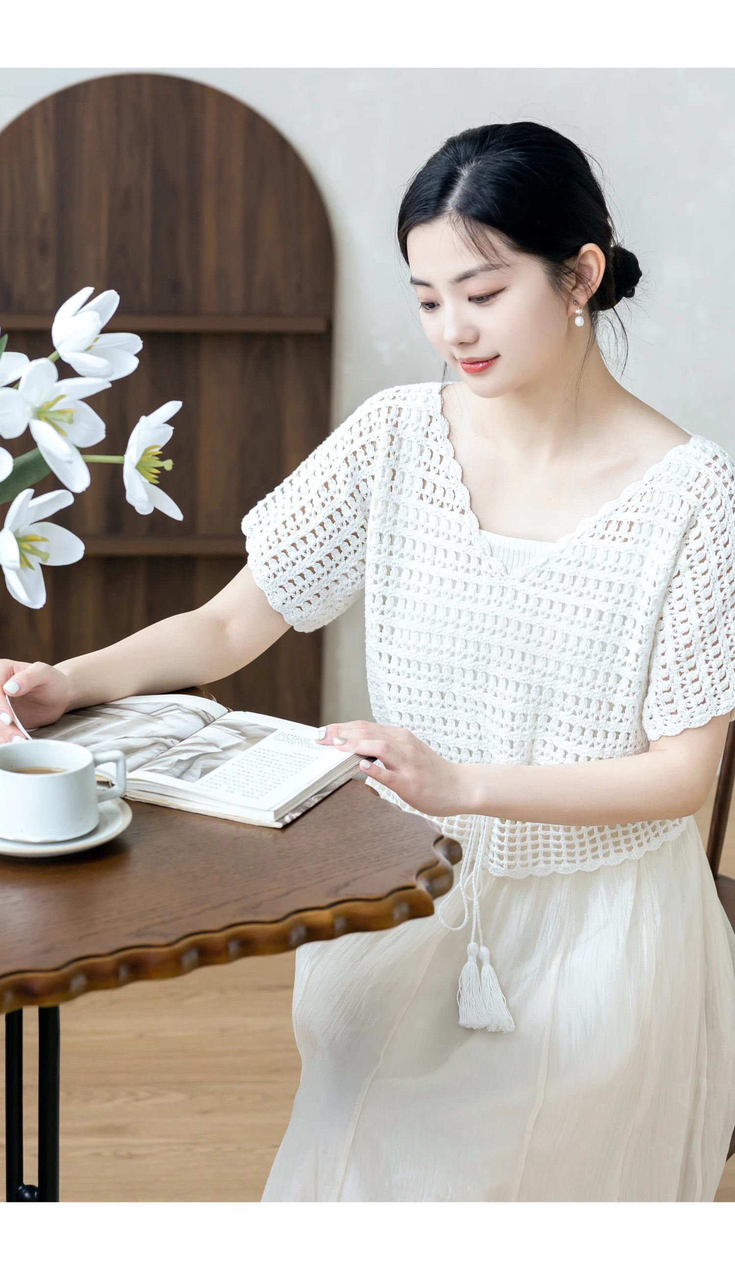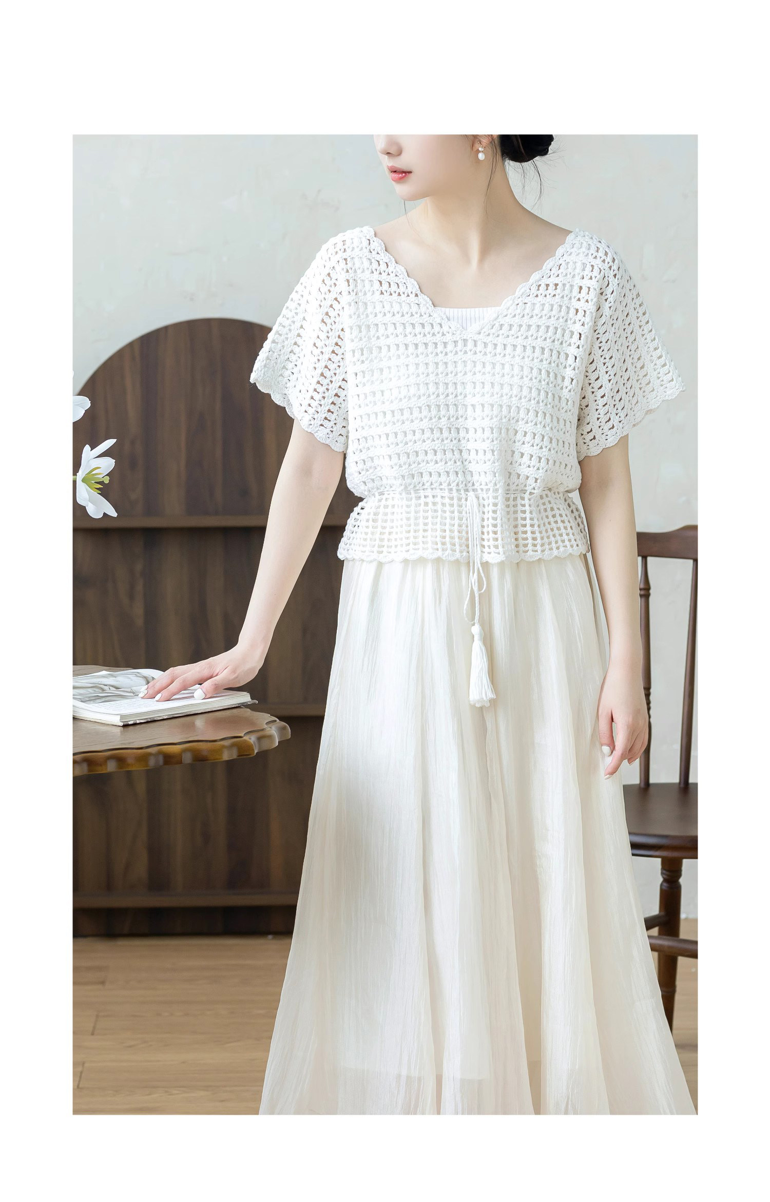 Sister Su Su's Soft and Elegant Waist-Cinching Short-Sleeved Linen Crochet Material Kit for Handmade DIY Knitting with Yarn and Lace Thread