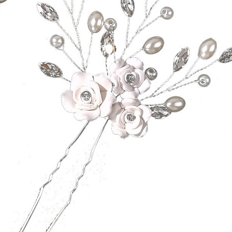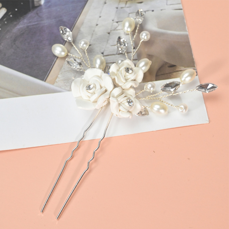 Er Xun Bridal Wedding Hair Accessories Handmade White Soft Clay Flower U-Shaped Hairpin Hair Stick Hair Ornament Cross-Border Exclusive Supply