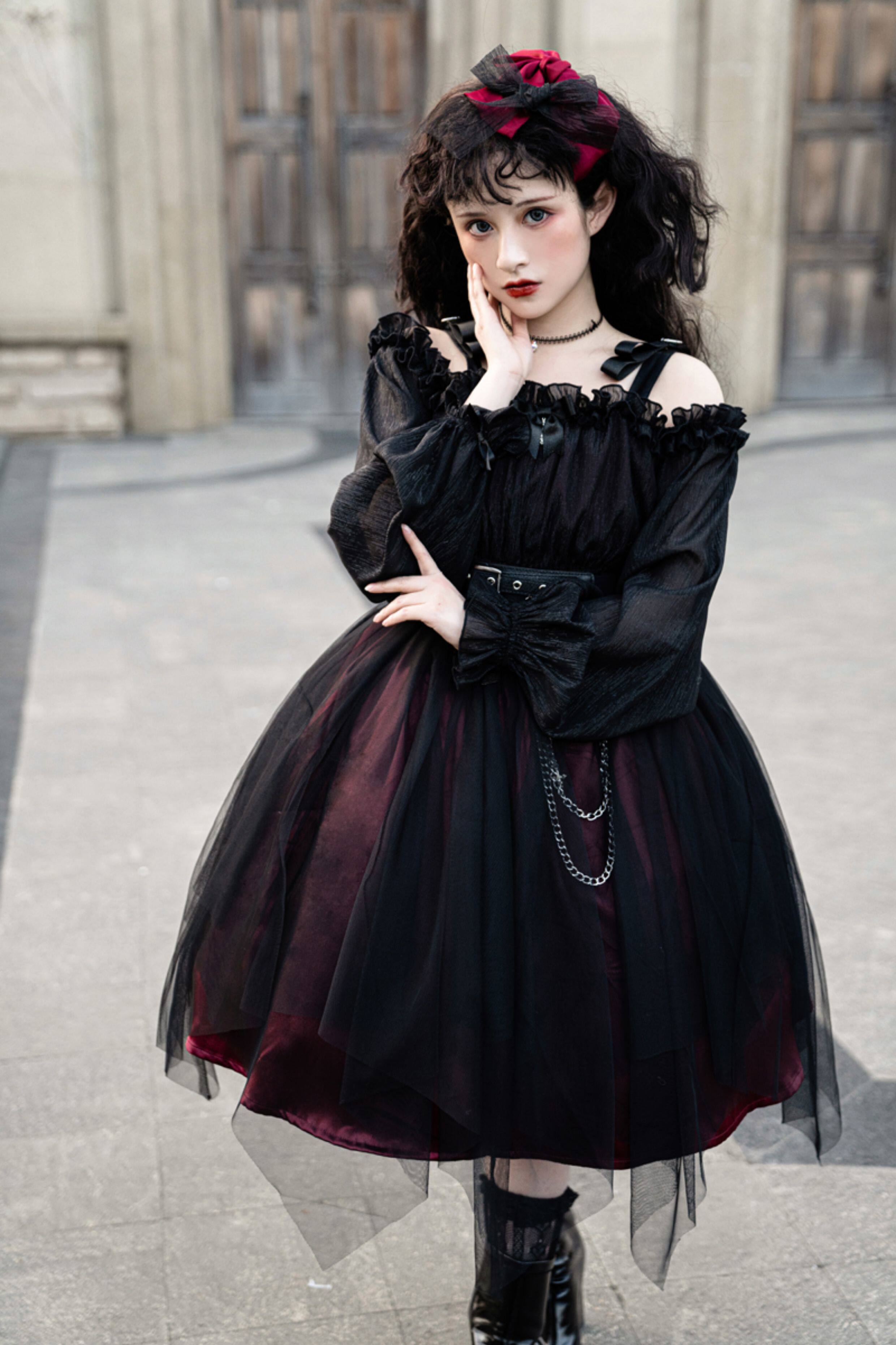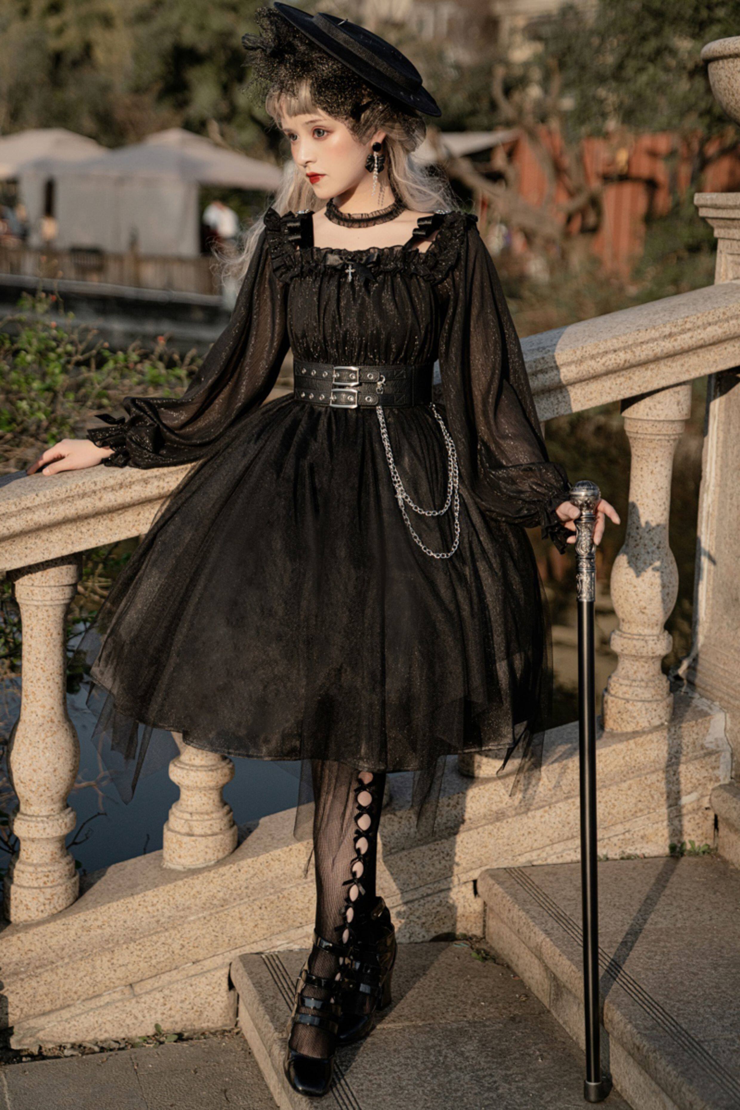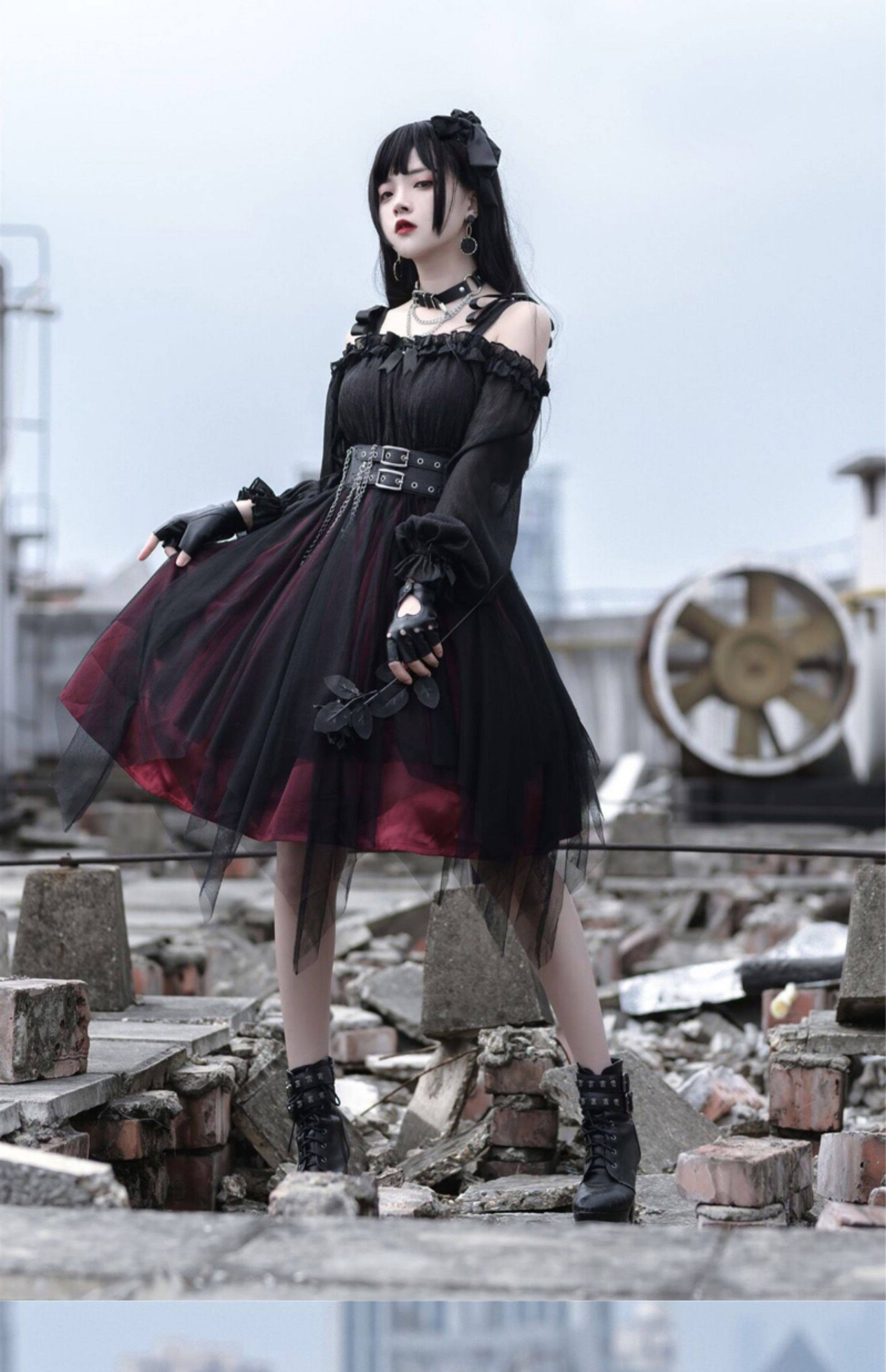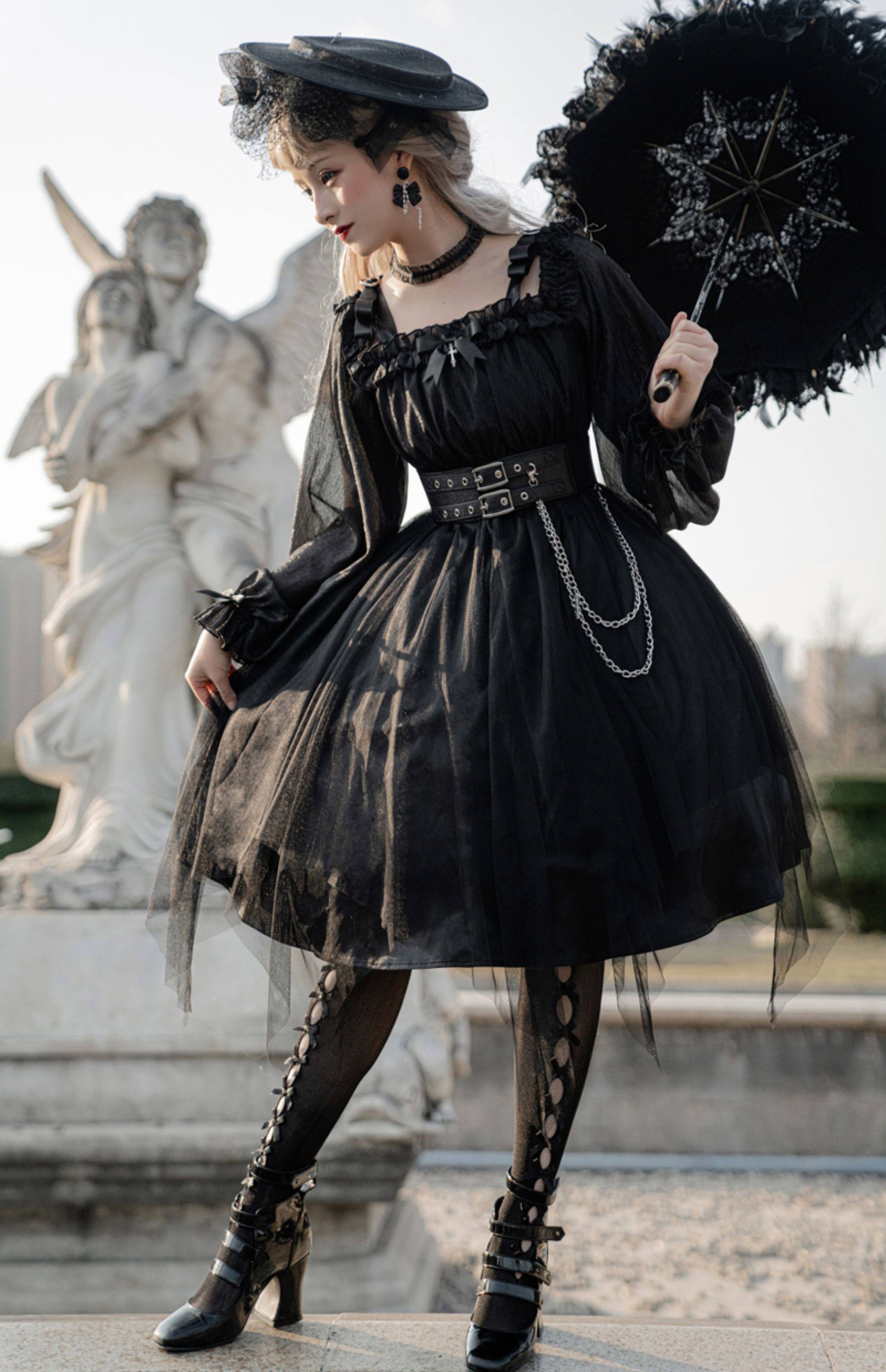 Original authentic girl killer lolita goth dark style loli high waist mesh daily dress OP dress