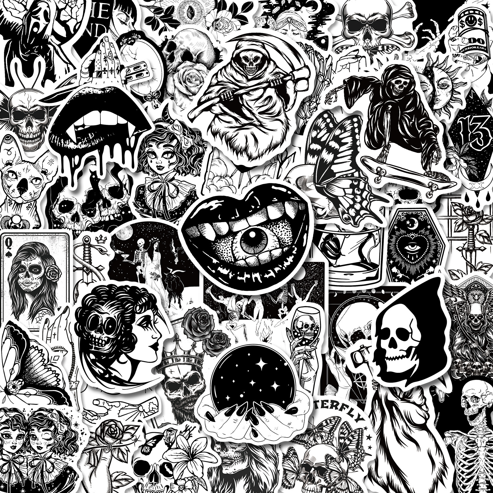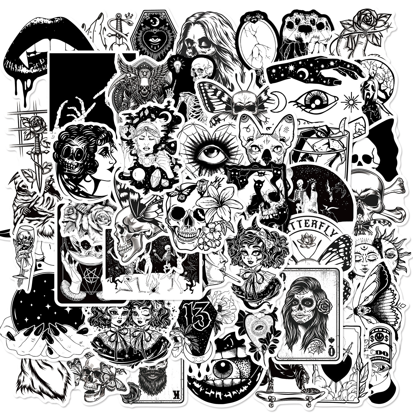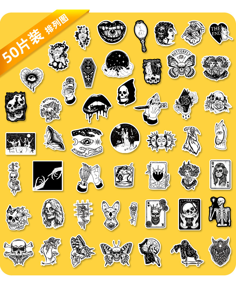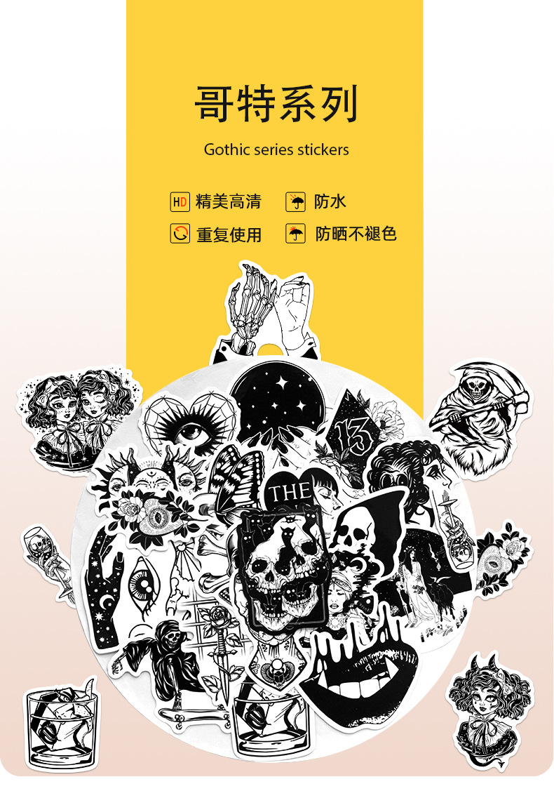 50 Gothic Horror Series Stickers Black and White Gothic Style Witch Magic Stickers Luggage Phone Waterproof Stickers