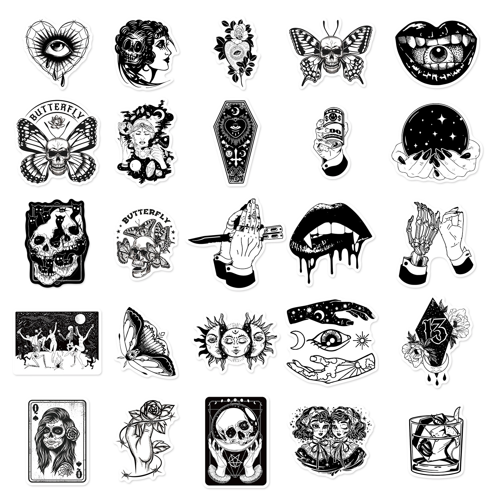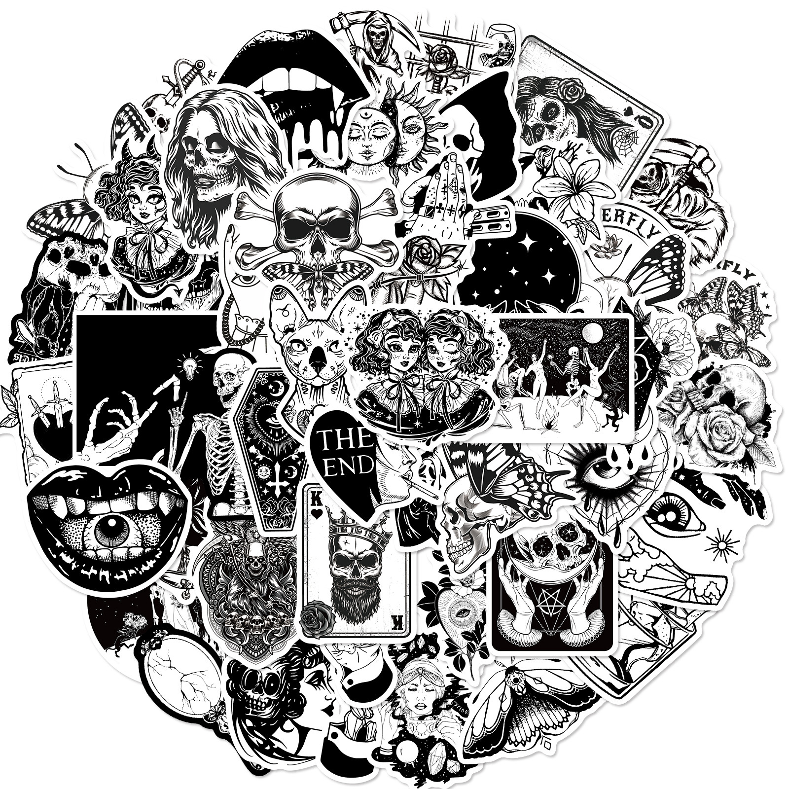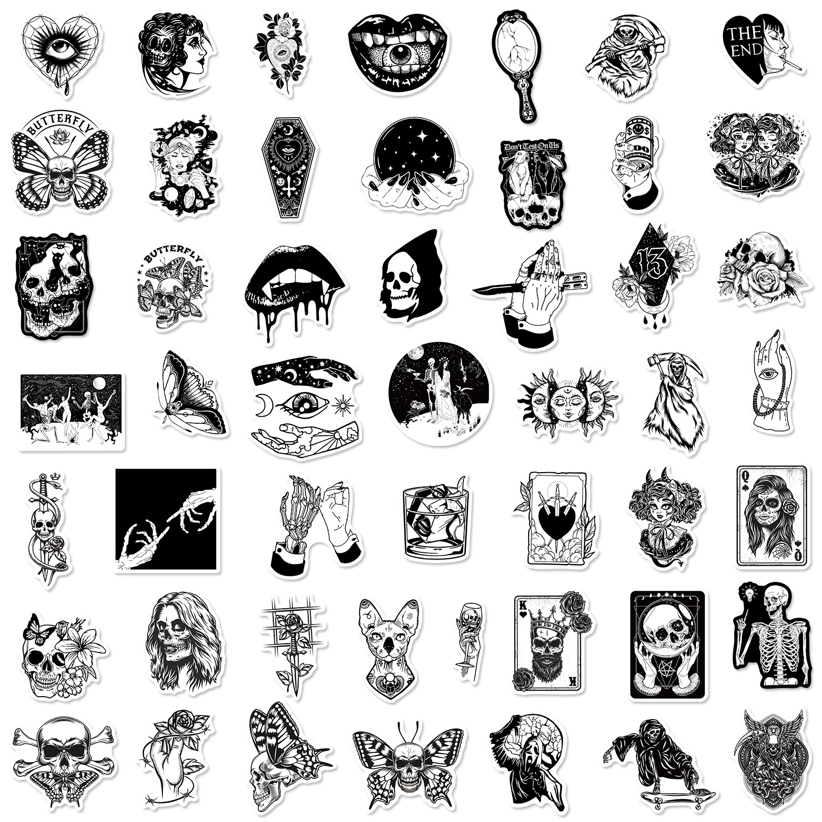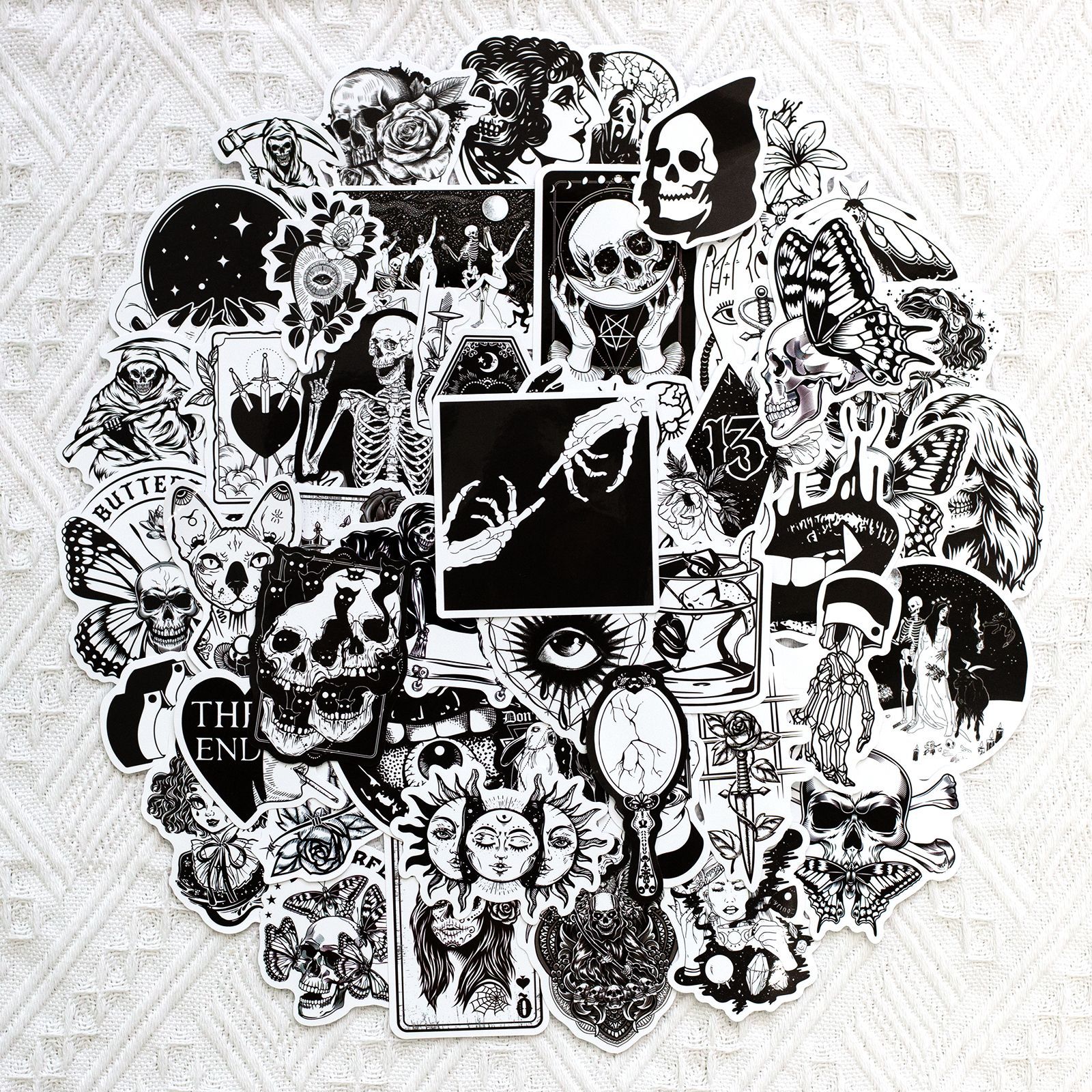 50 Gothic Horror Series Stickers Black and White Gothic Style Witch Magic Stickers Luggage Phone Waterproof Stickers