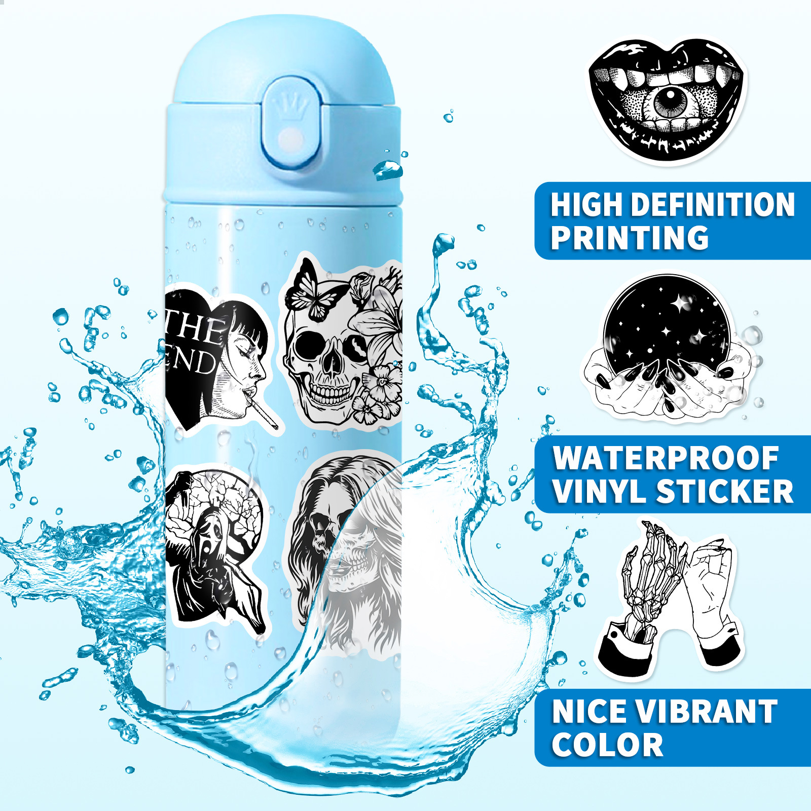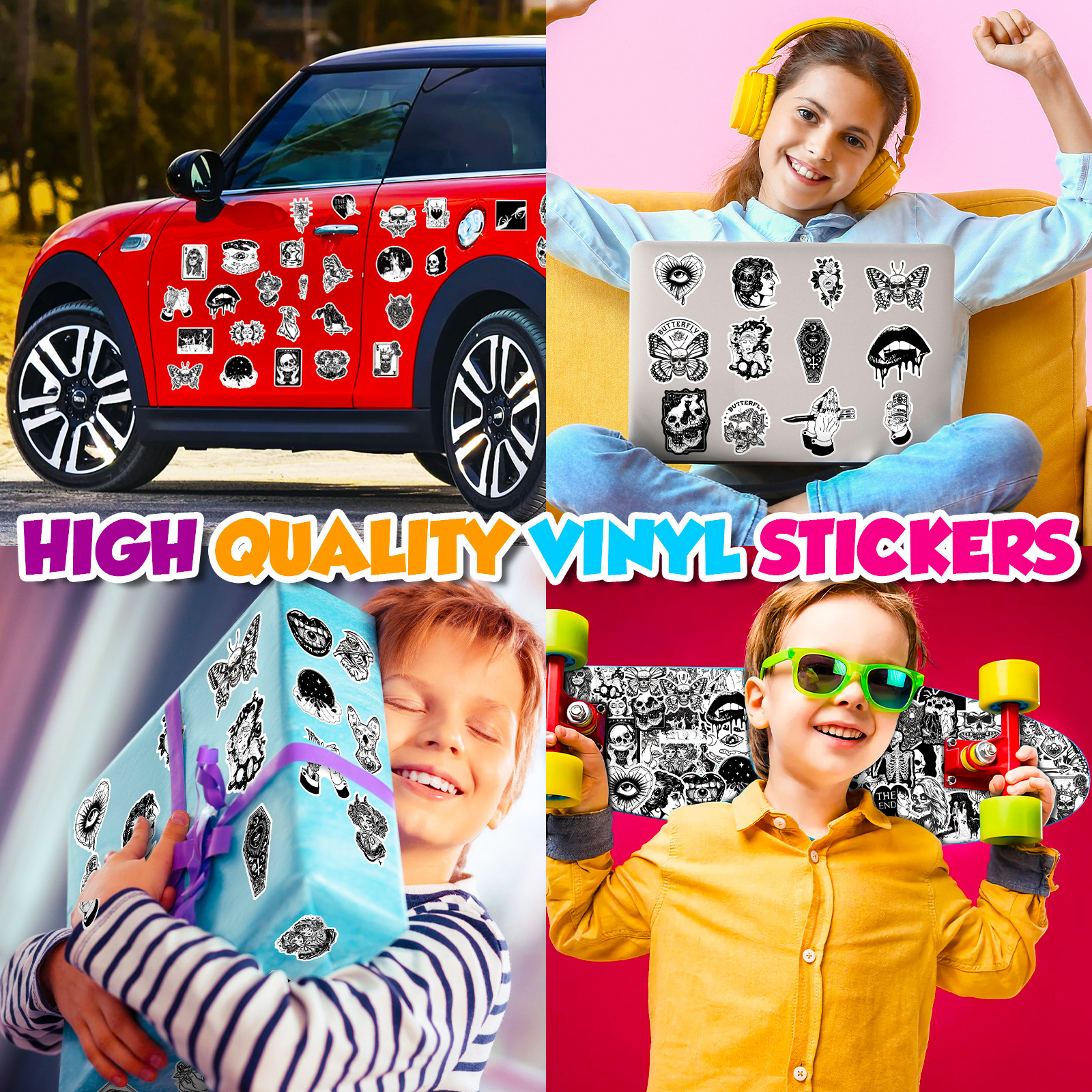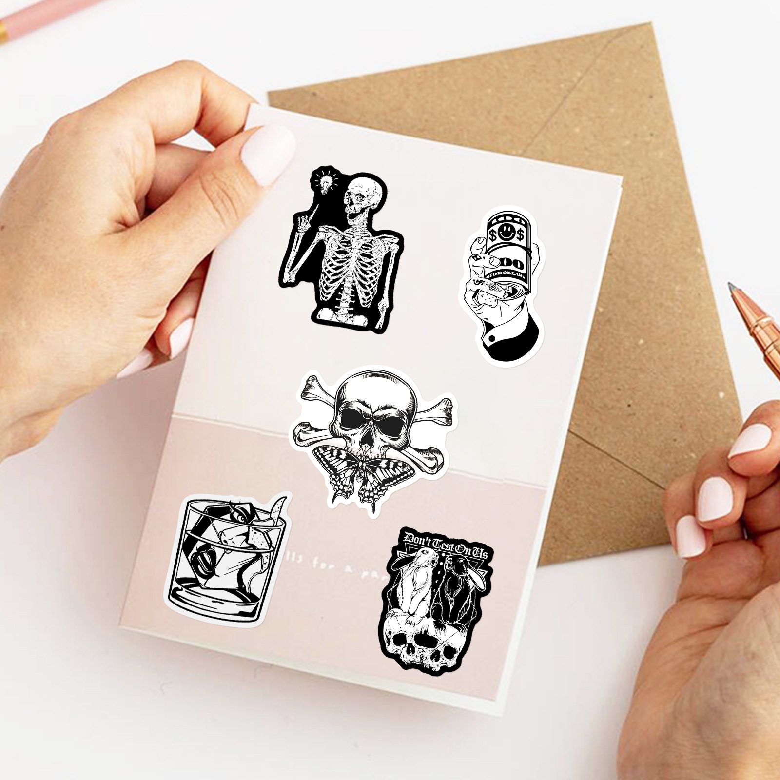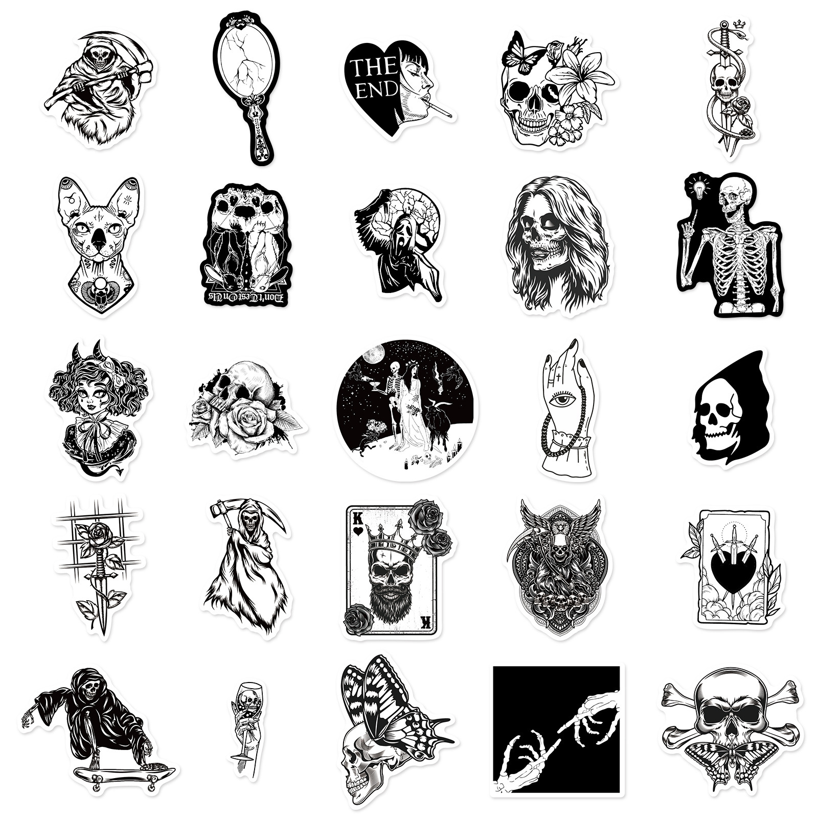 50 Gothic Horror Series Stickers Black and White Gothic Style Witch Magic Stickers Luggage Phone Waterproof Stickers