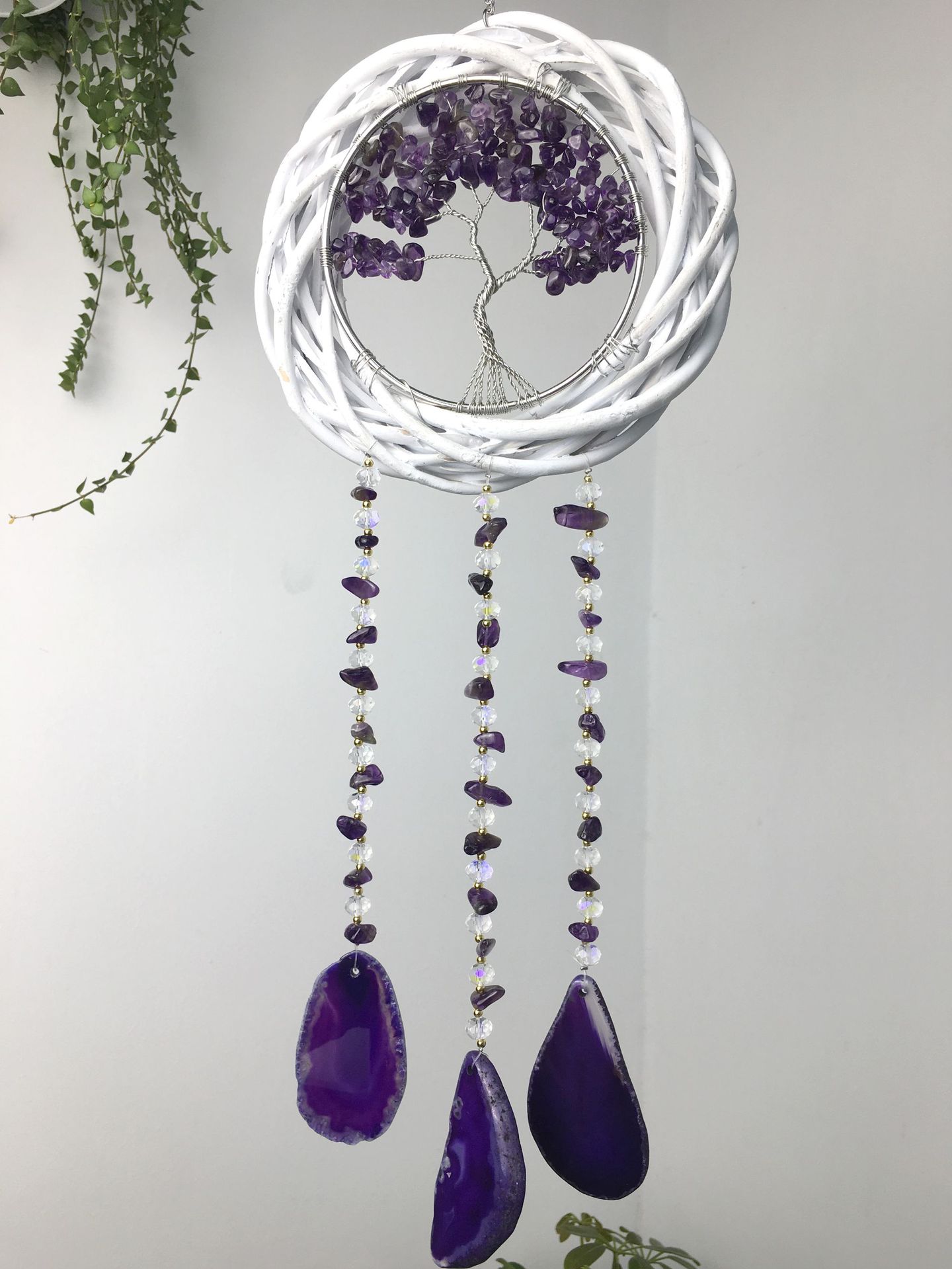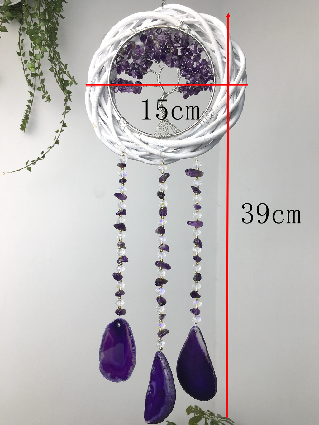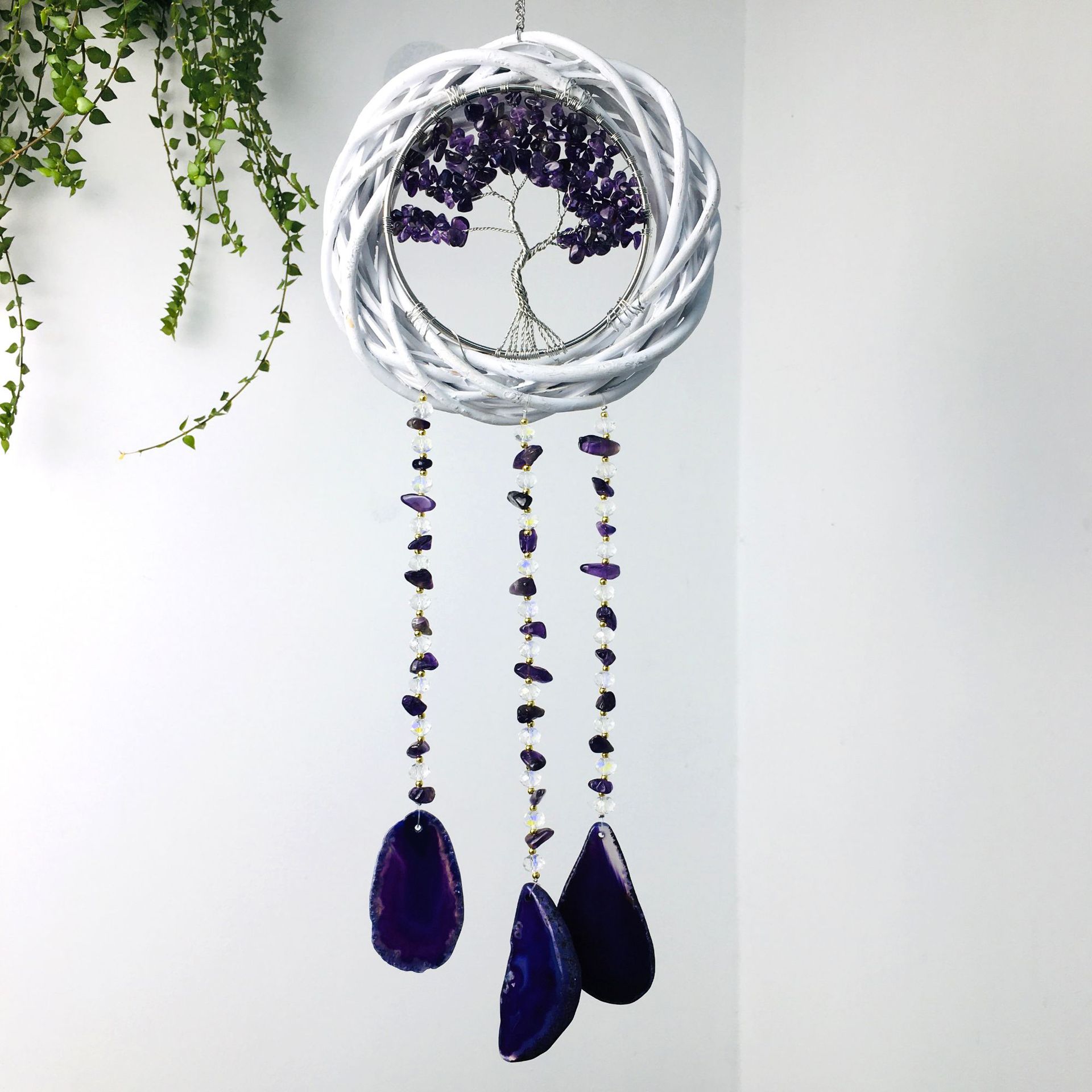 Wall hanging wicker wreath cross-border natural amethyst hand-wound tree of life agate piece wind chime factory wholesale