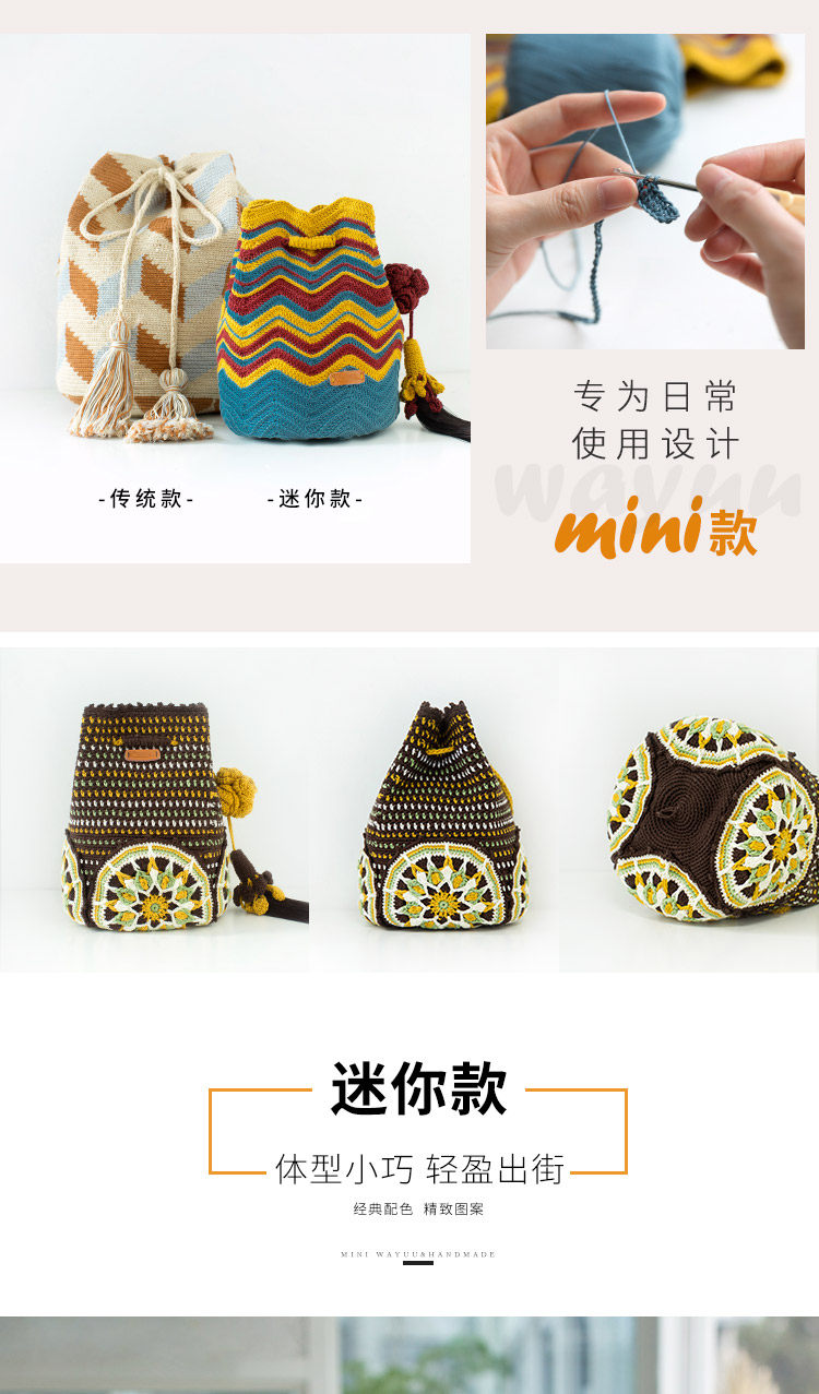 Sister Susu's mini wayuu bag hand-knitted crochet diy material bag lace thread wool ball