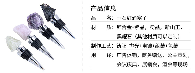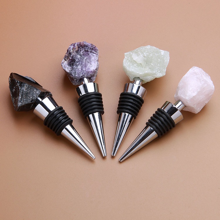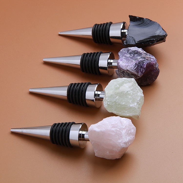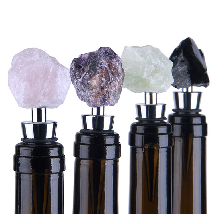 Factory direct supply of natural crystal jade high-end wine bottle stoppers, amethyst pink crystal raw stone red wine stoppers wholesale