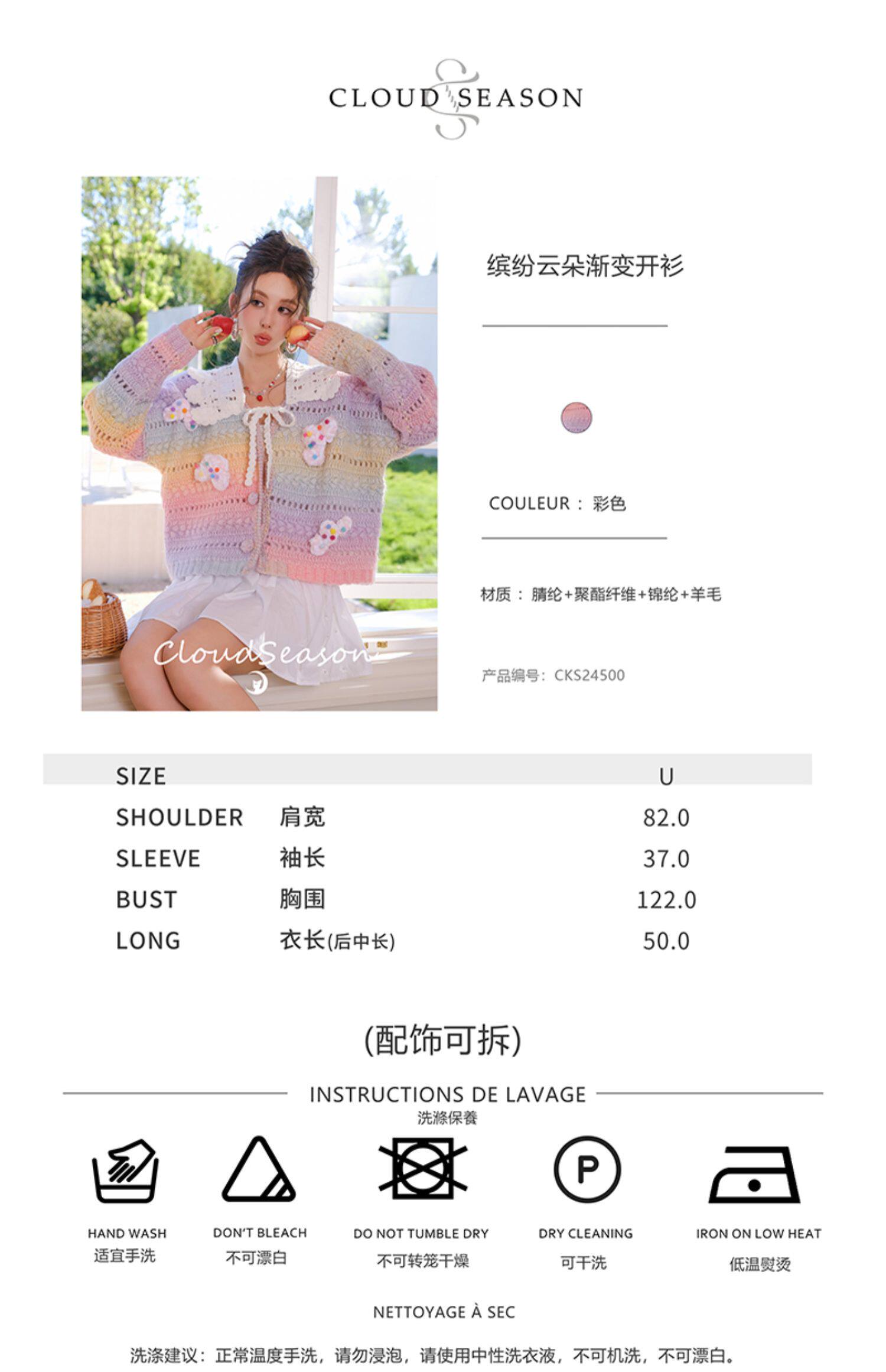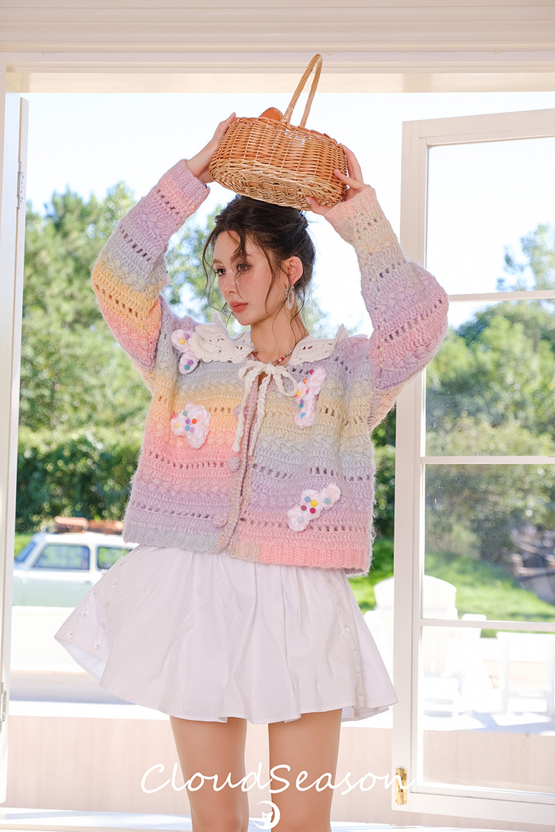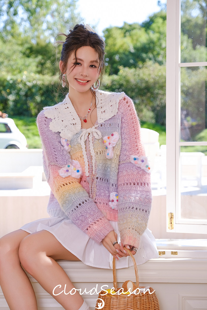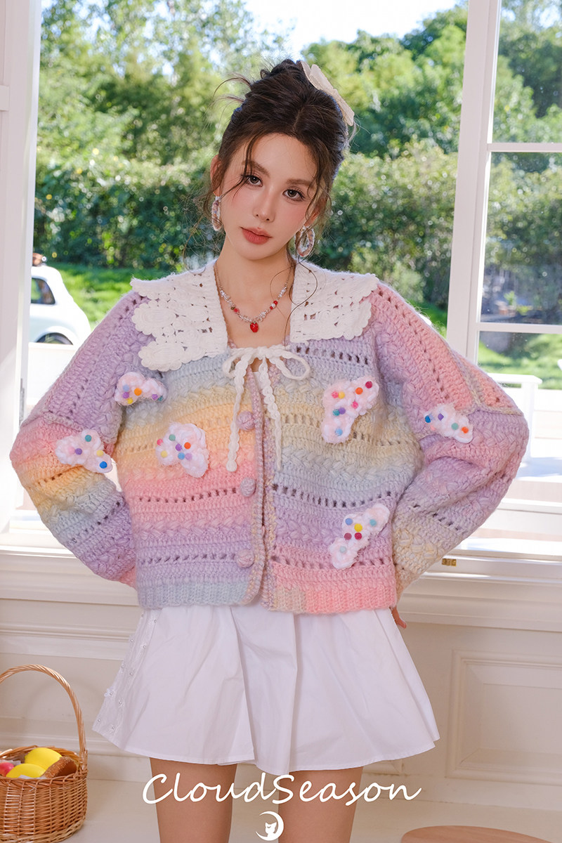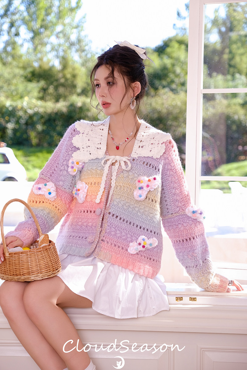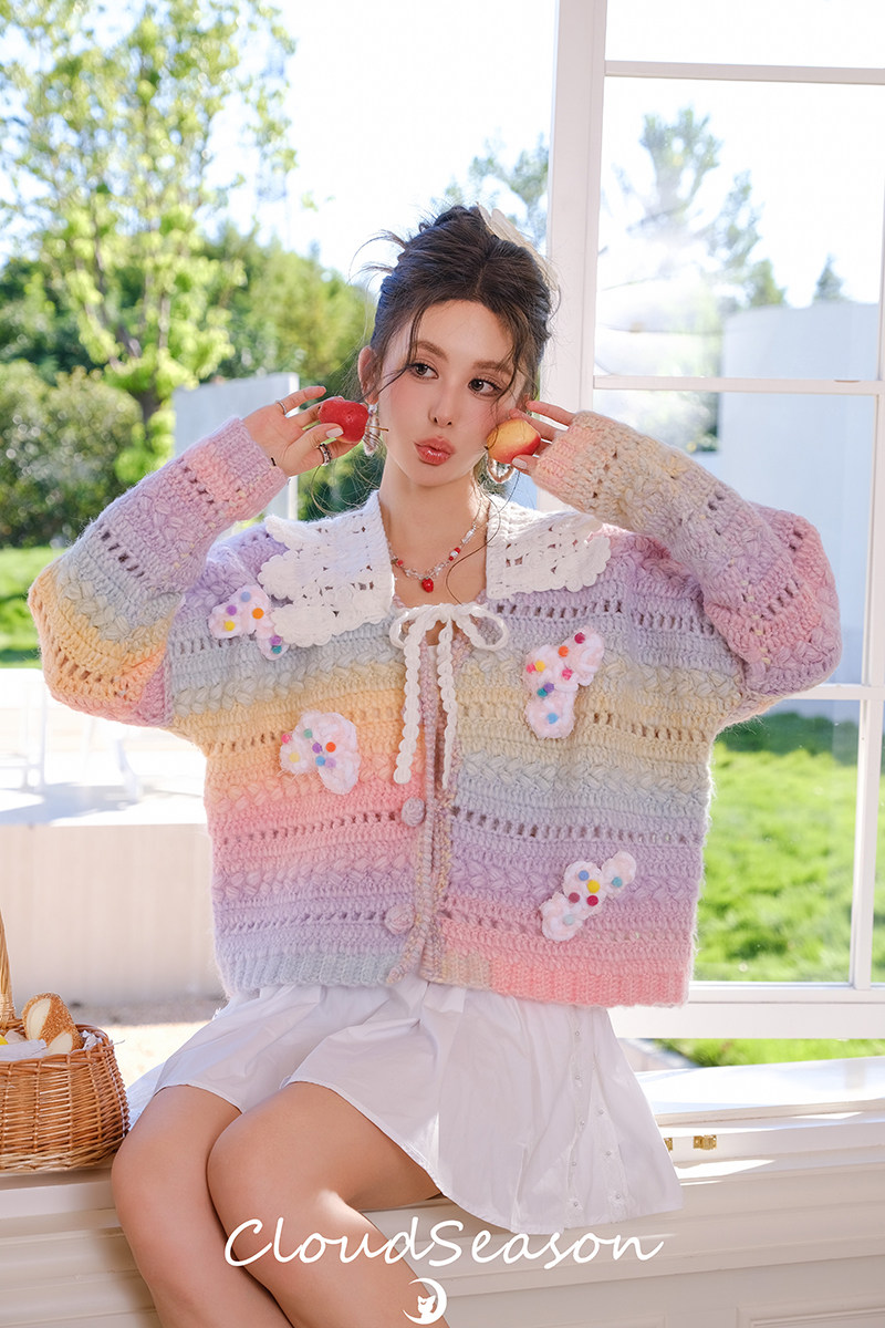 Cloud season officially authorized colorful cloud gradient knitted cardigan for women 2024 autumn and winter style sweater