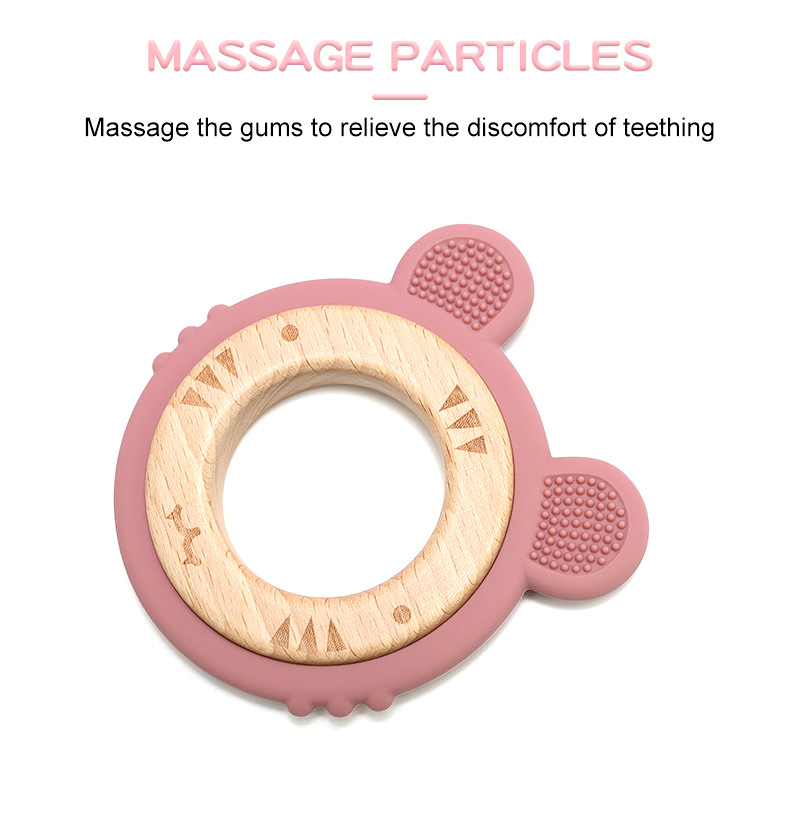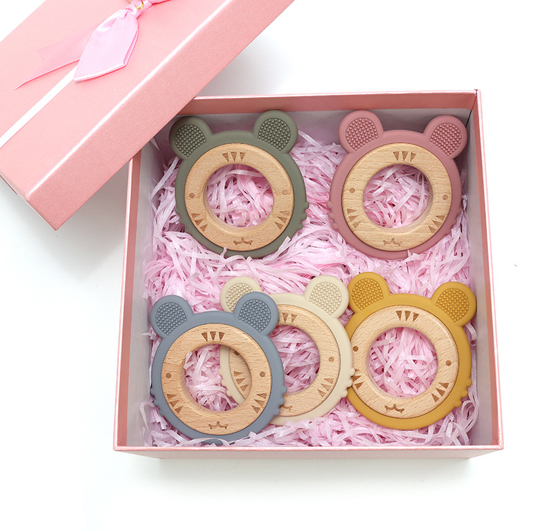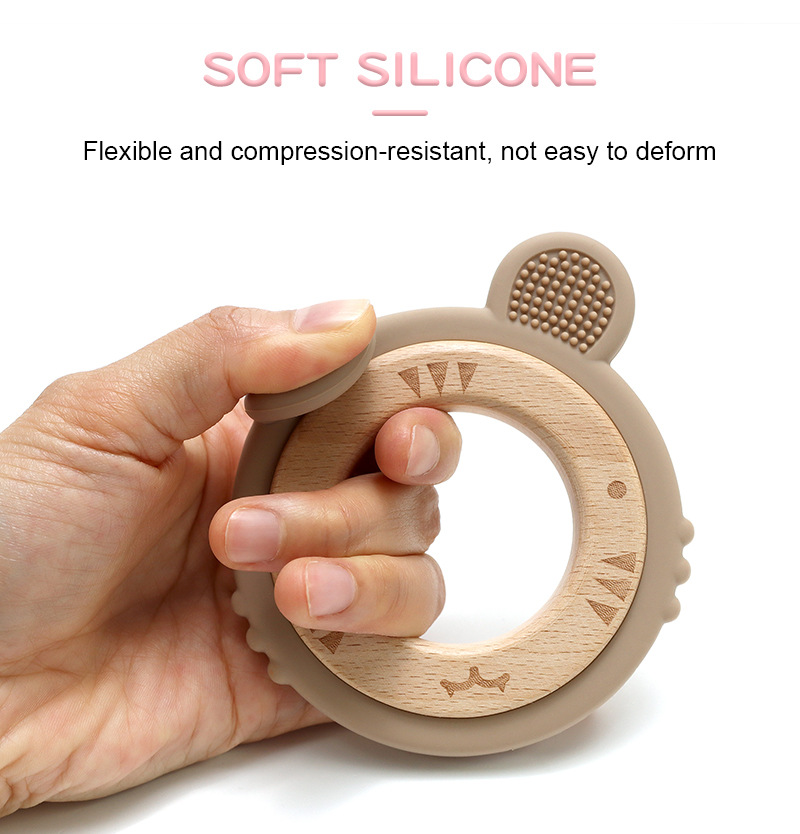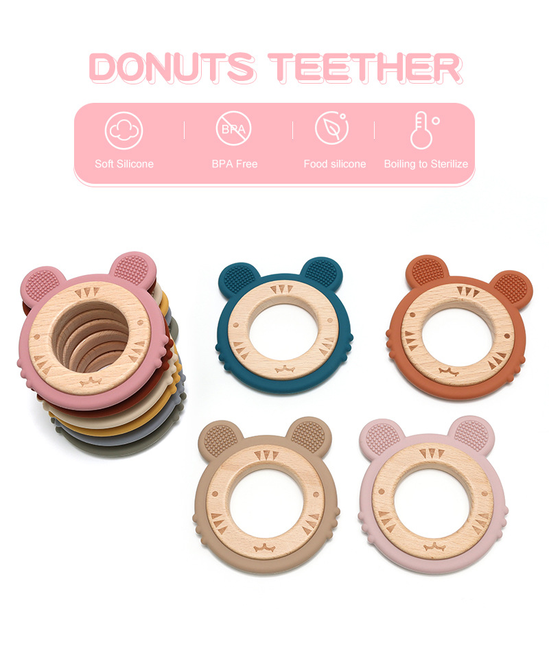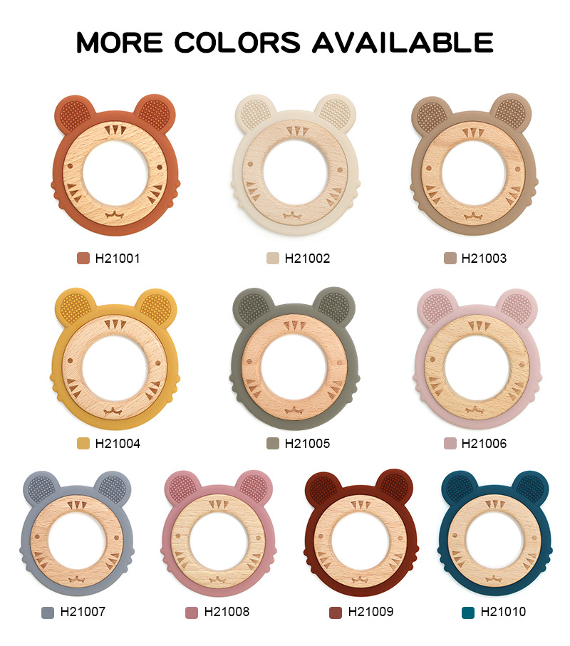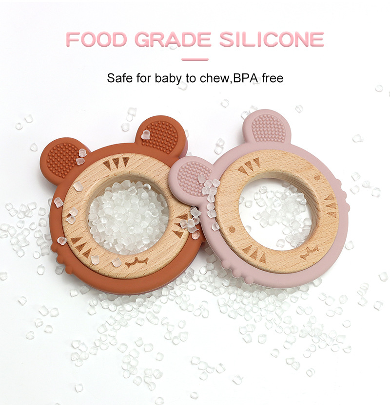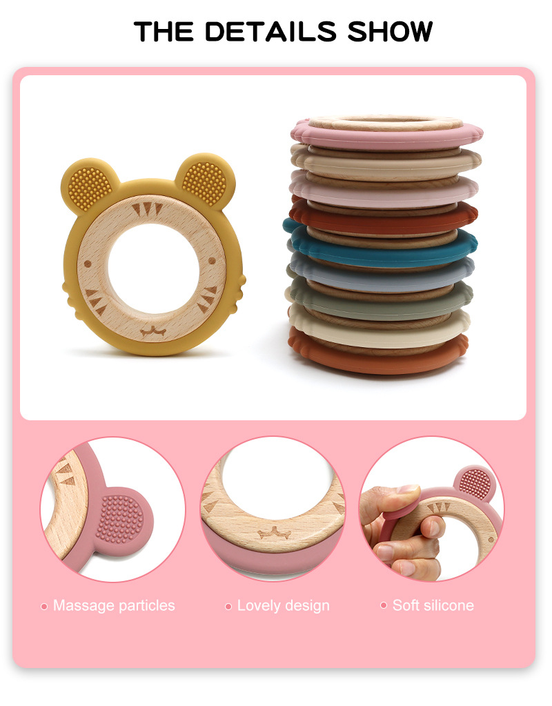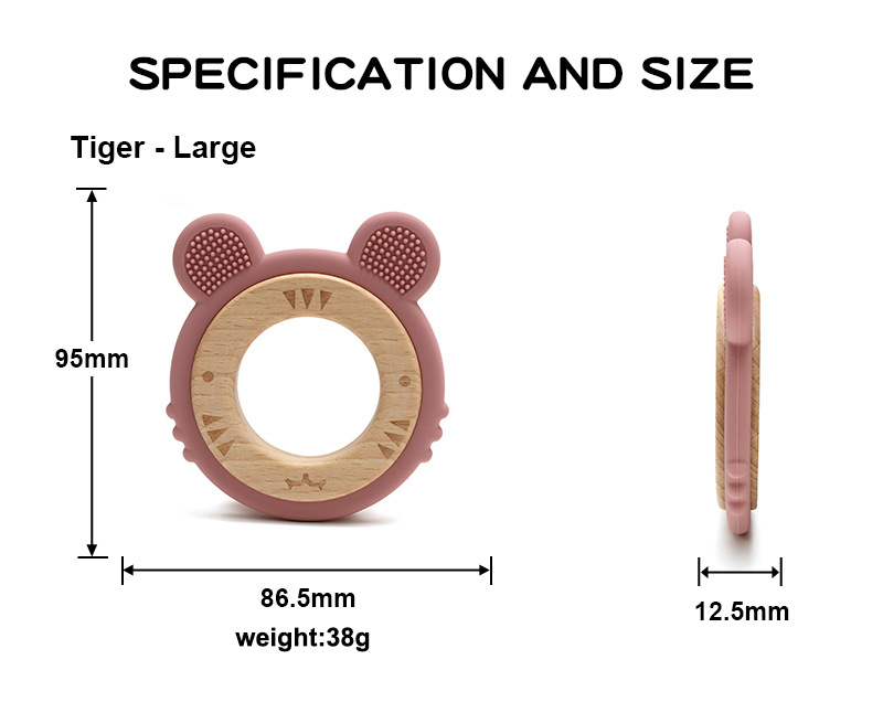 Popular cross-border wooden circle silicone baby teether cute tiger baby comfort toy baby teether toy