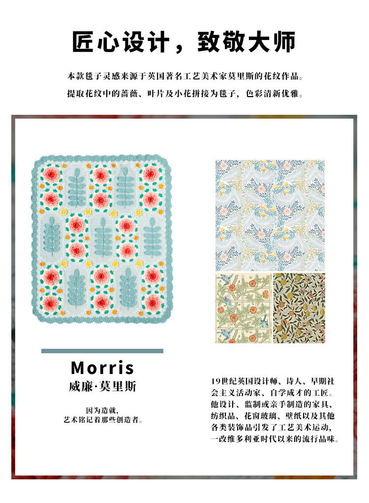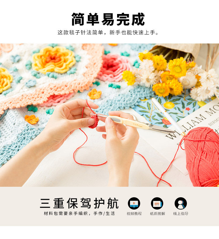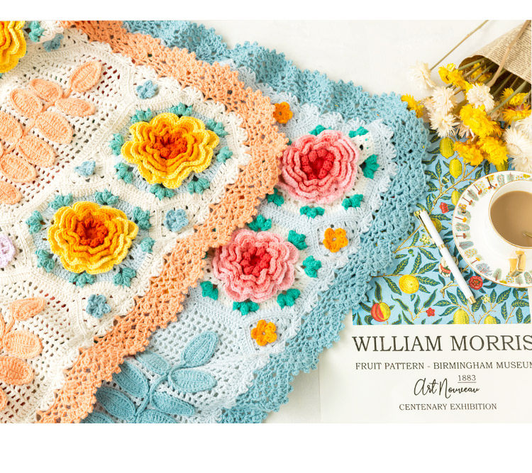 Sister Susu's Morris rose tapestry diy hand-knitted crochet blanket wool ball material package pre-made