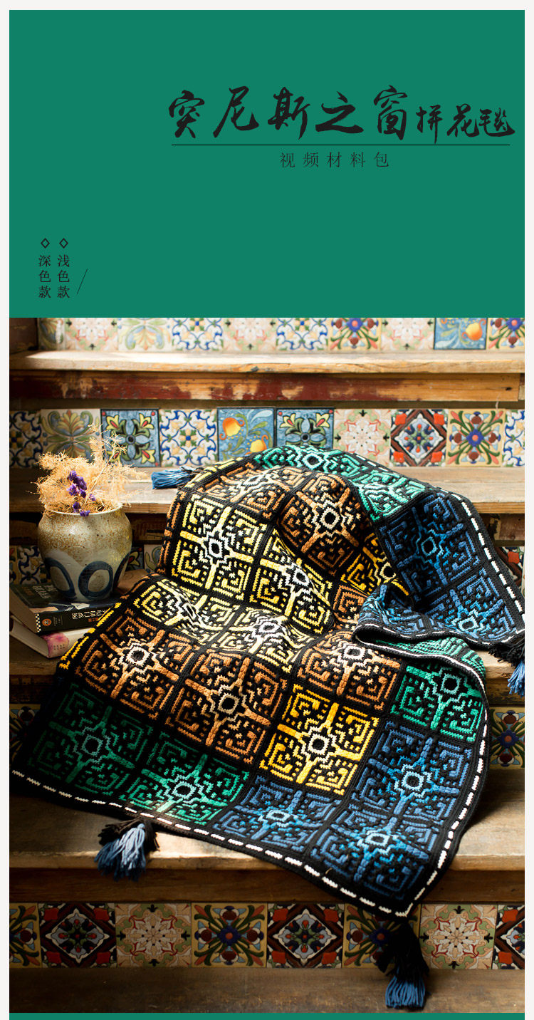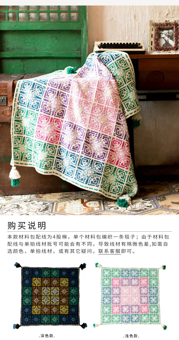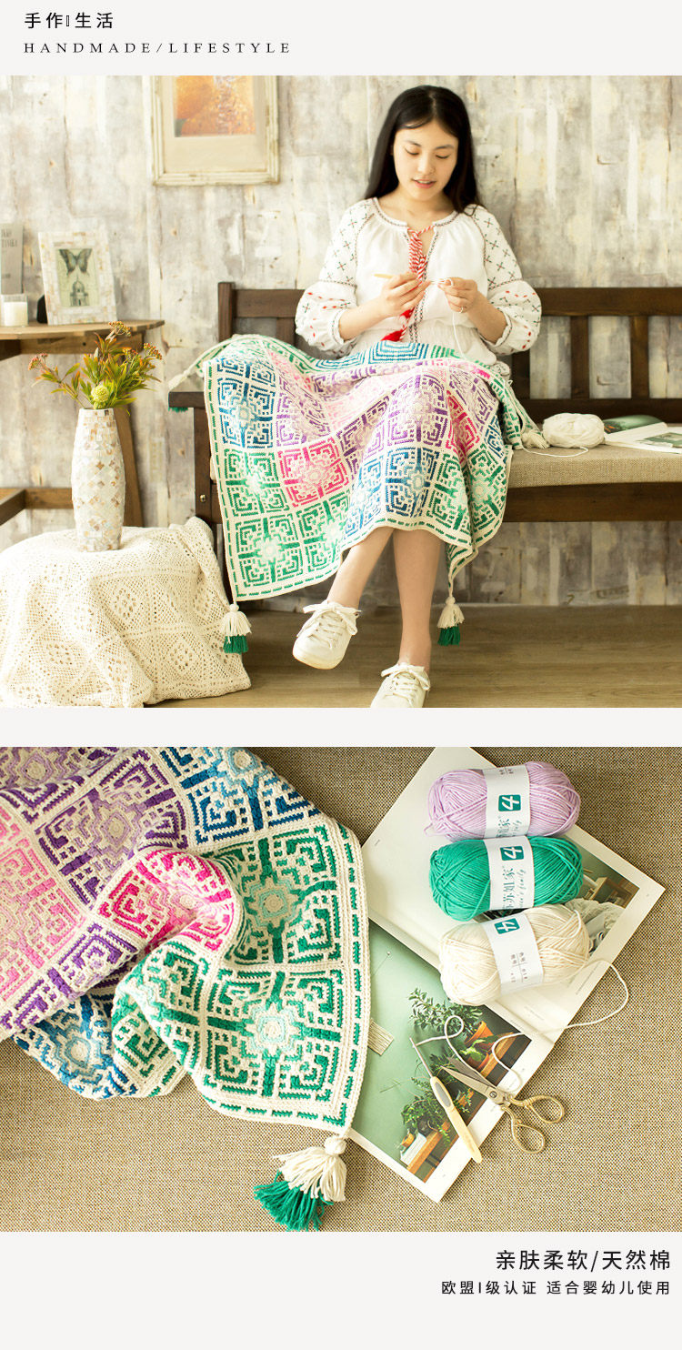 Sister Su Su's Tunisian Window Patchwork Blanket DIY Crochet Thread Cotton Yarn Ball Material Kit