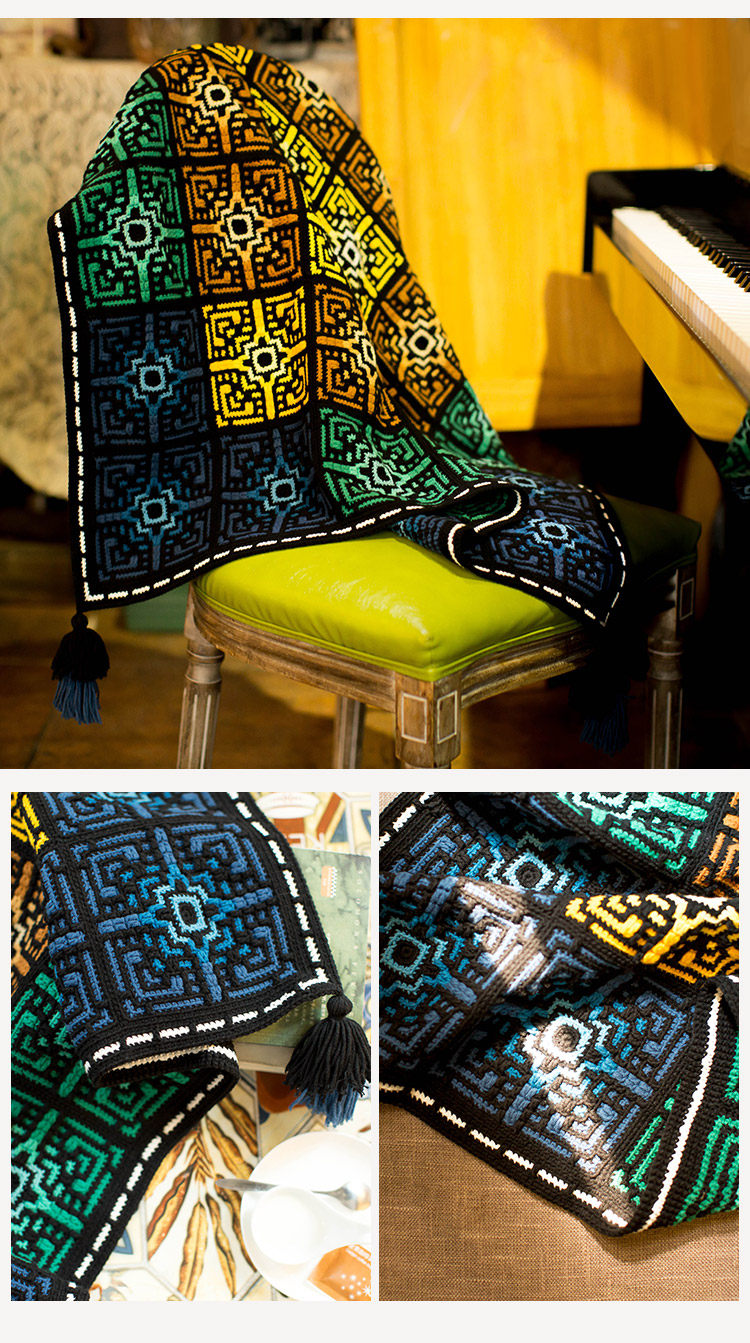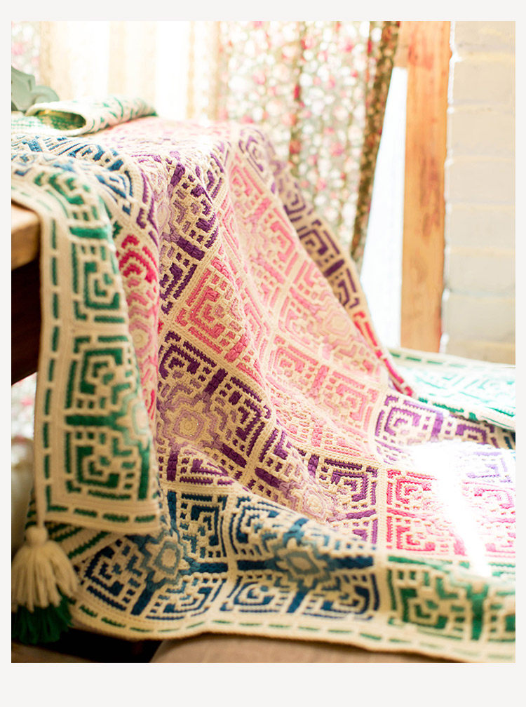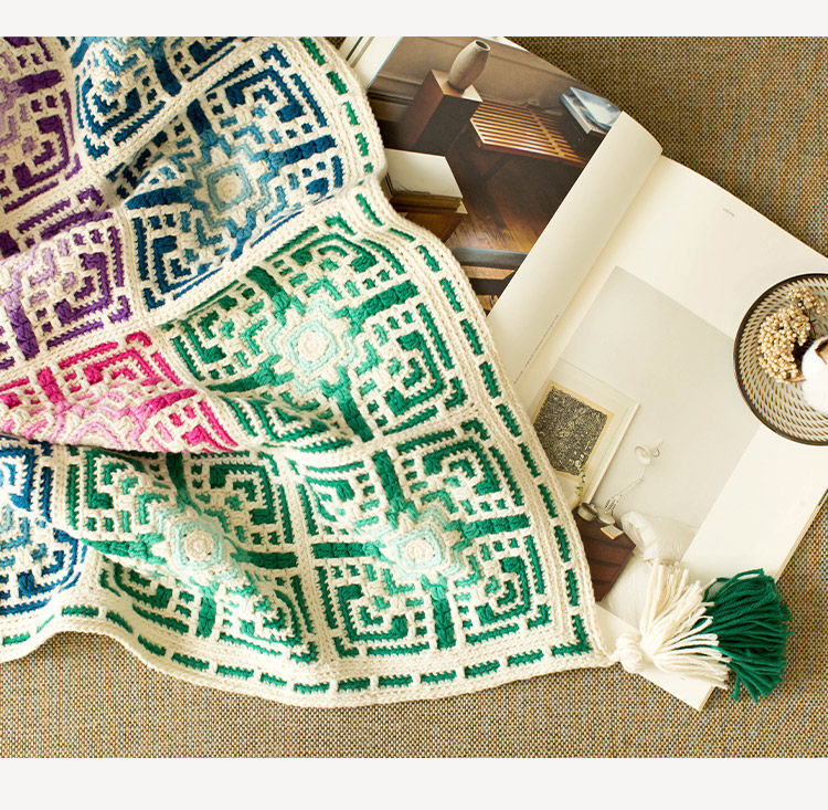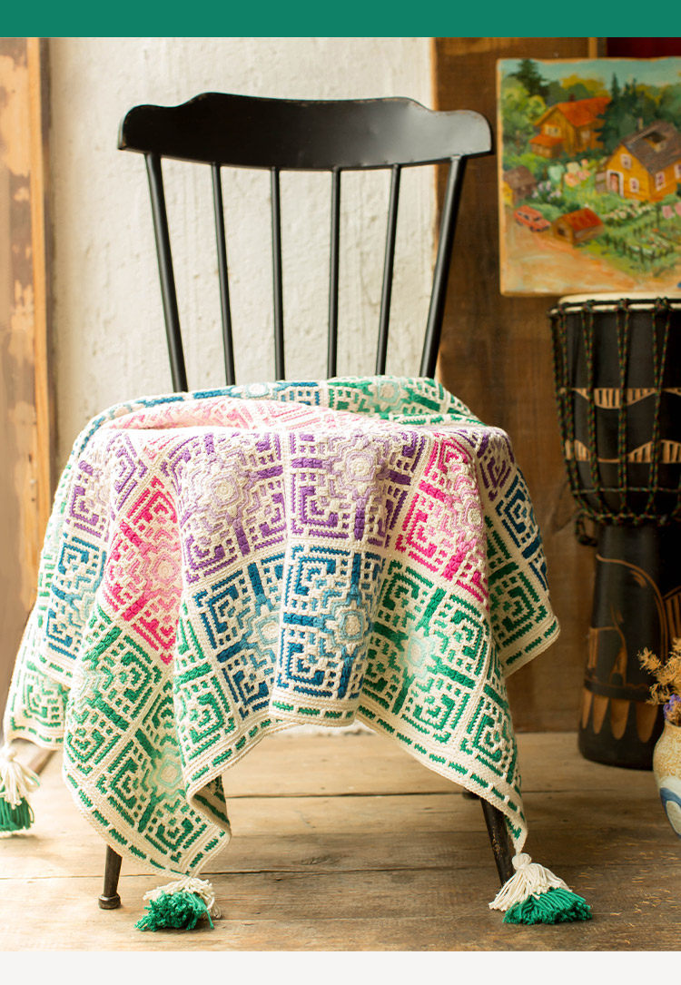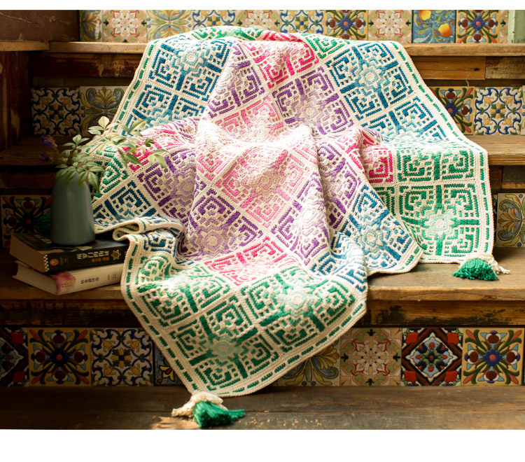 Sister Su Su's Tunisian Window Patchwork Blanket DIY Crochet Thread Cotton Yarn Ball Material Kit